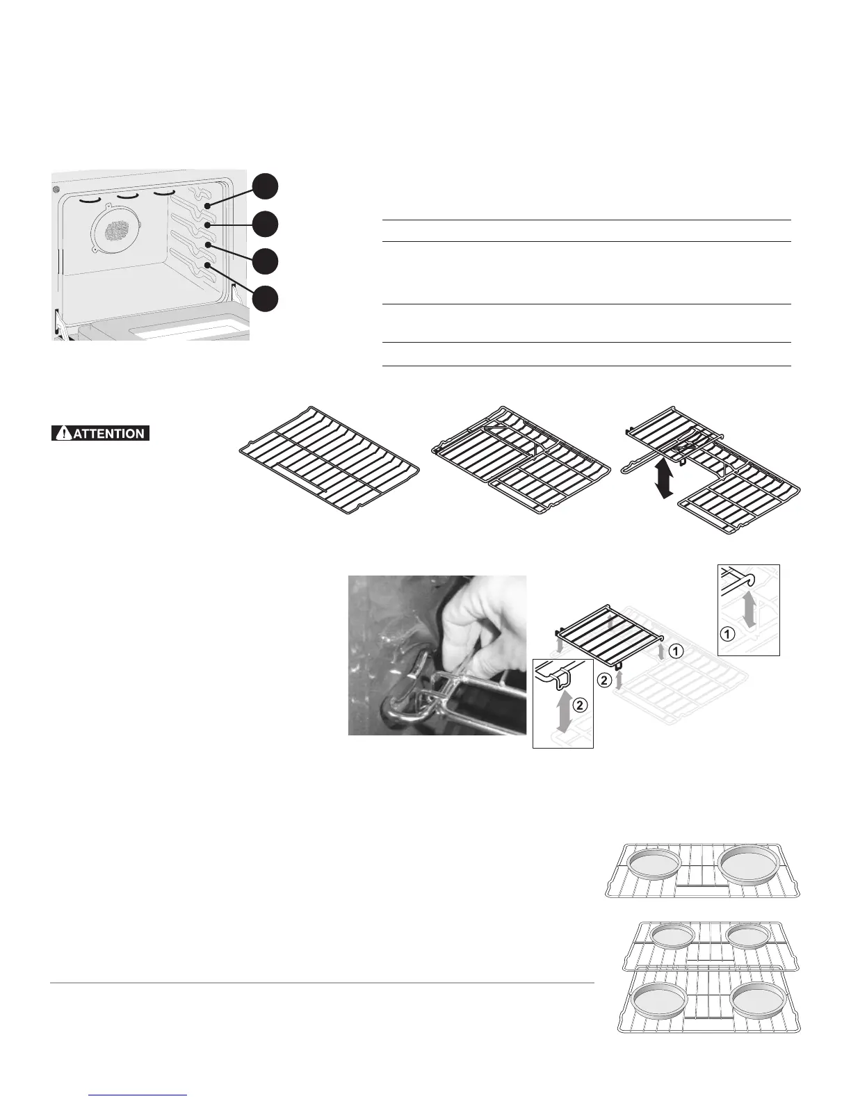 Pour la cuisson avec une seule grille, placez la grille en position 2 ou 3. Pour la cuisson avec plusieurs grilles, placez