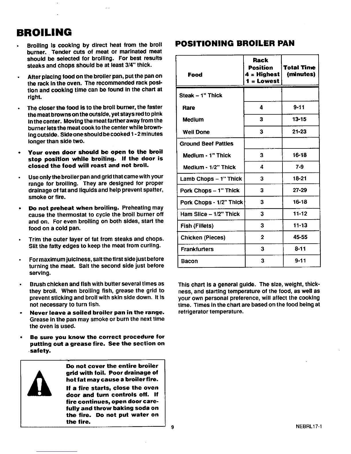 hot fat may cause a broiler fire.