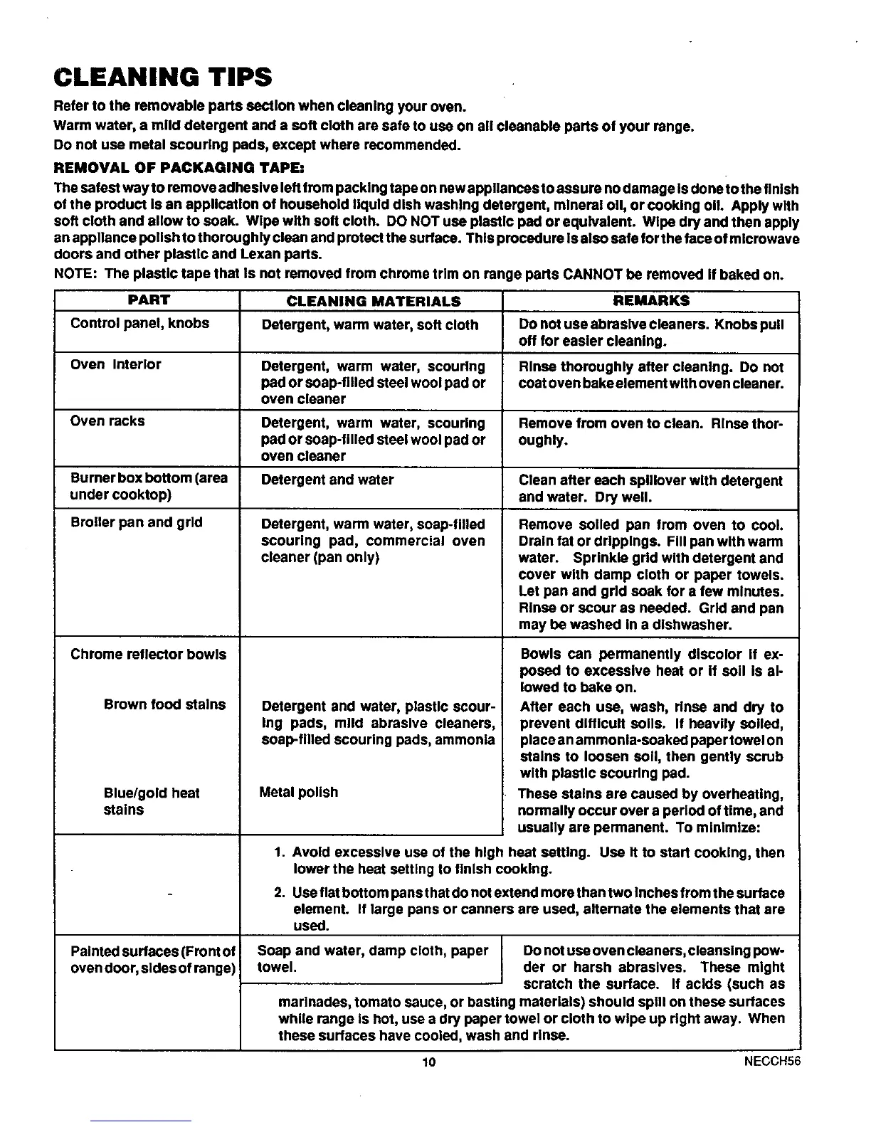 NOTE: The plastic tape that is not removed from chrome trim on range parts CANNOT be removed If baked on.
