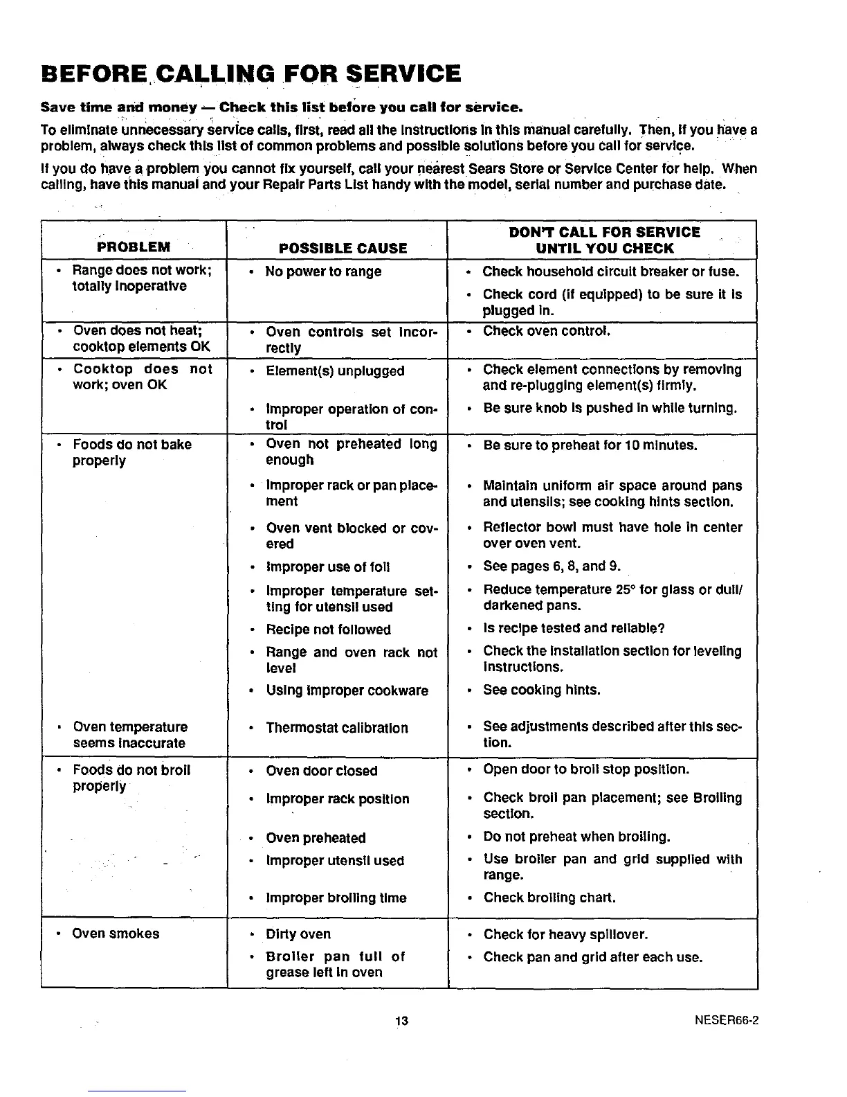 Save time and money m Check this list before you call for service.