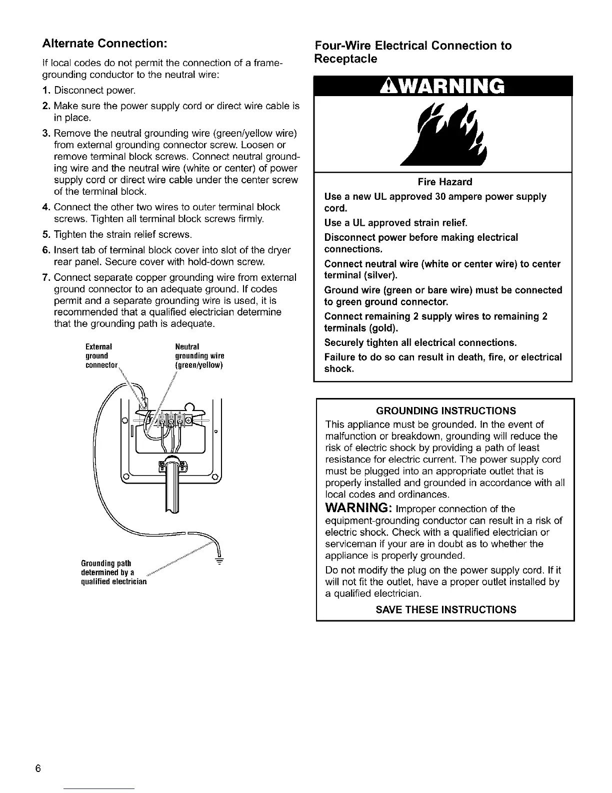 permit and a separate grounding wire is used, it is