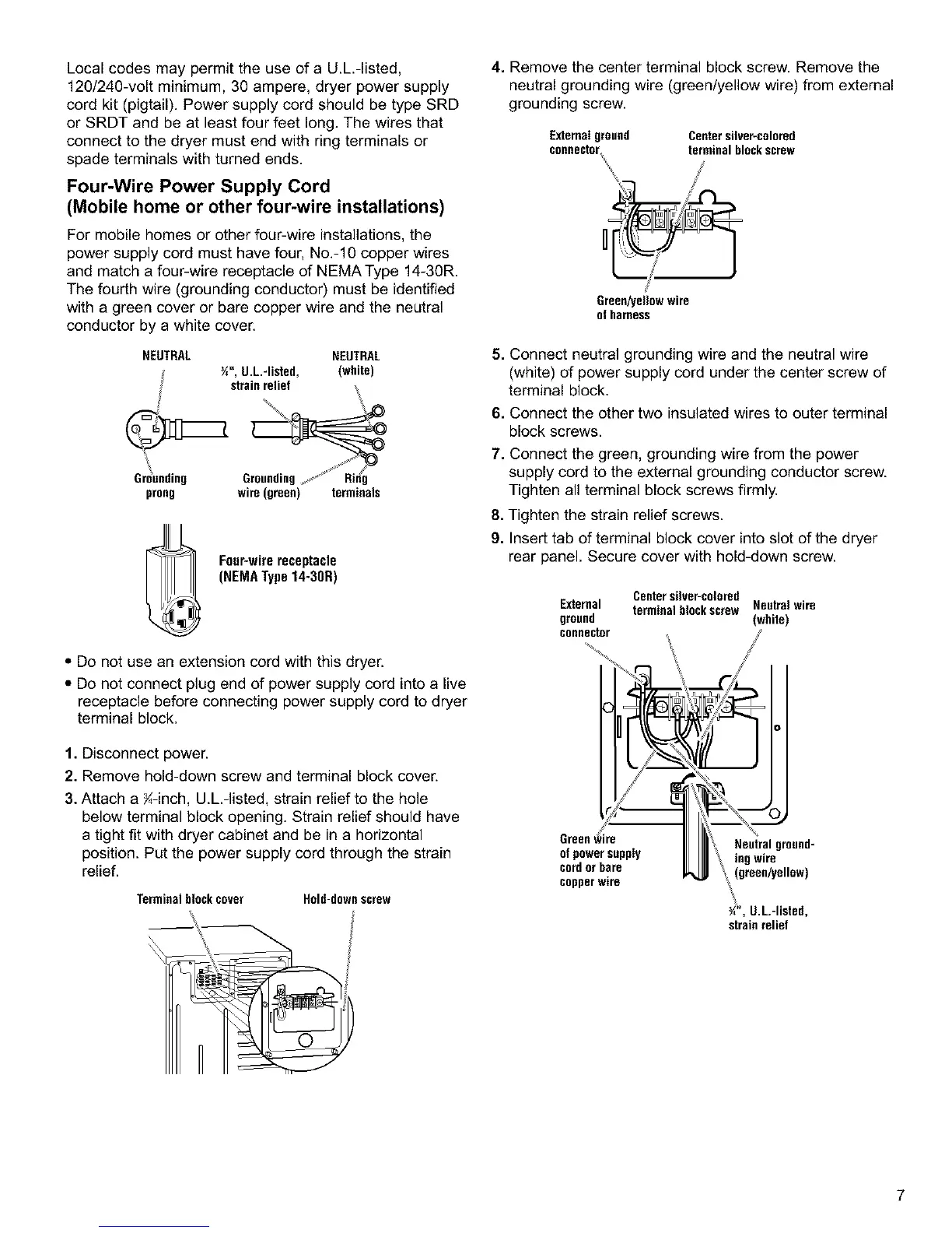 connecttothedryermustendwithringterminalsor