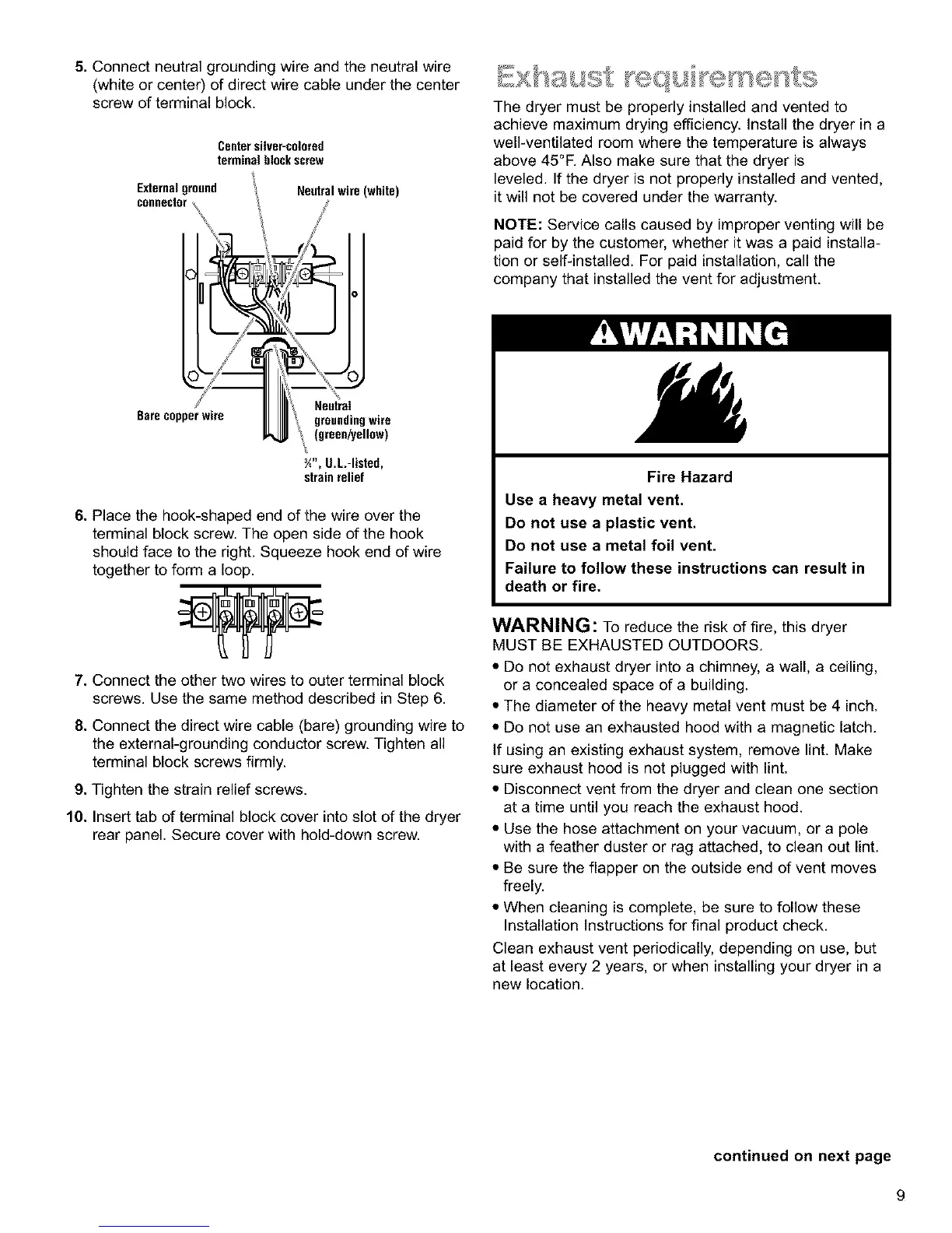 WARNING: To reduce the risk of fire, this dryer