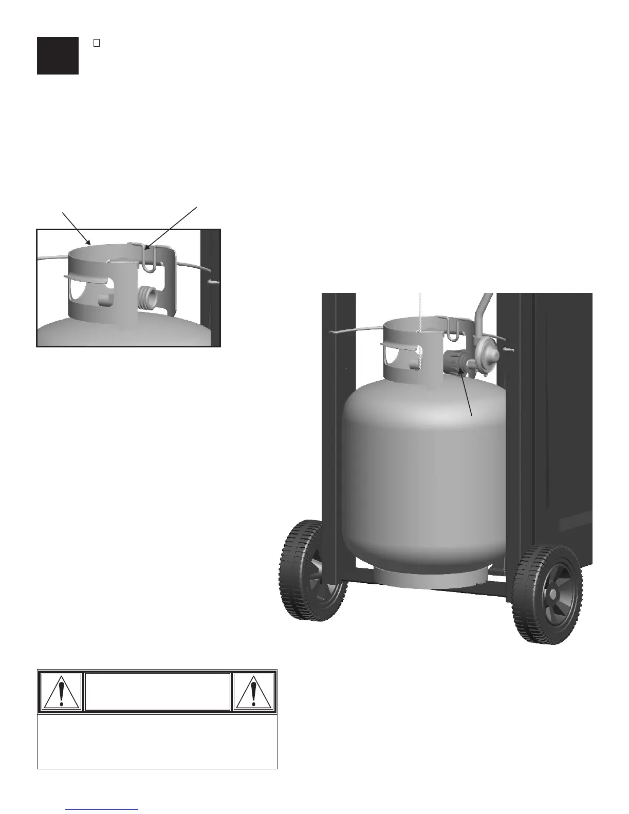 Care section). Once cylinder has been filled and leak checked, place cylinder into notches in tank