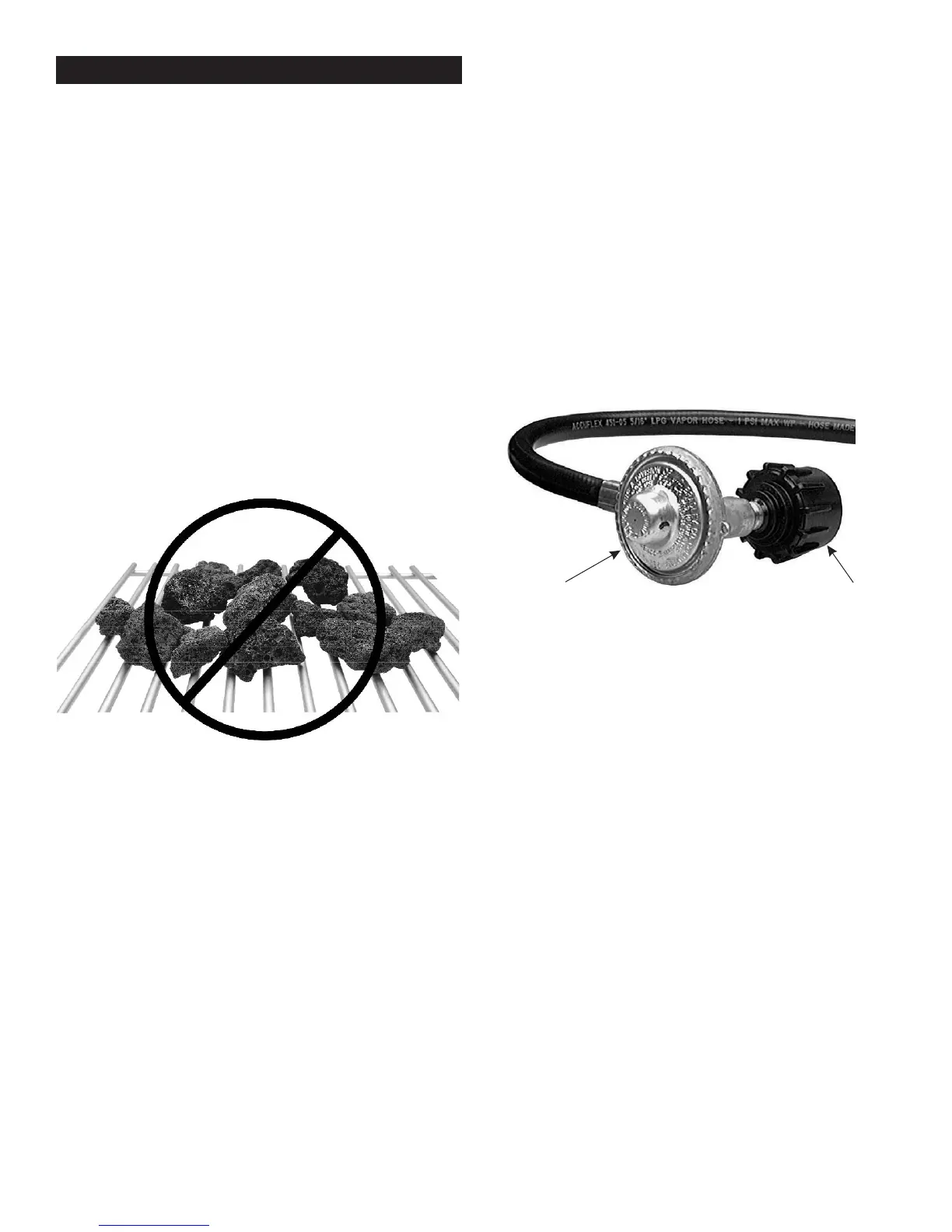 rocks, charcoal, or briquettes of any type will cause poor