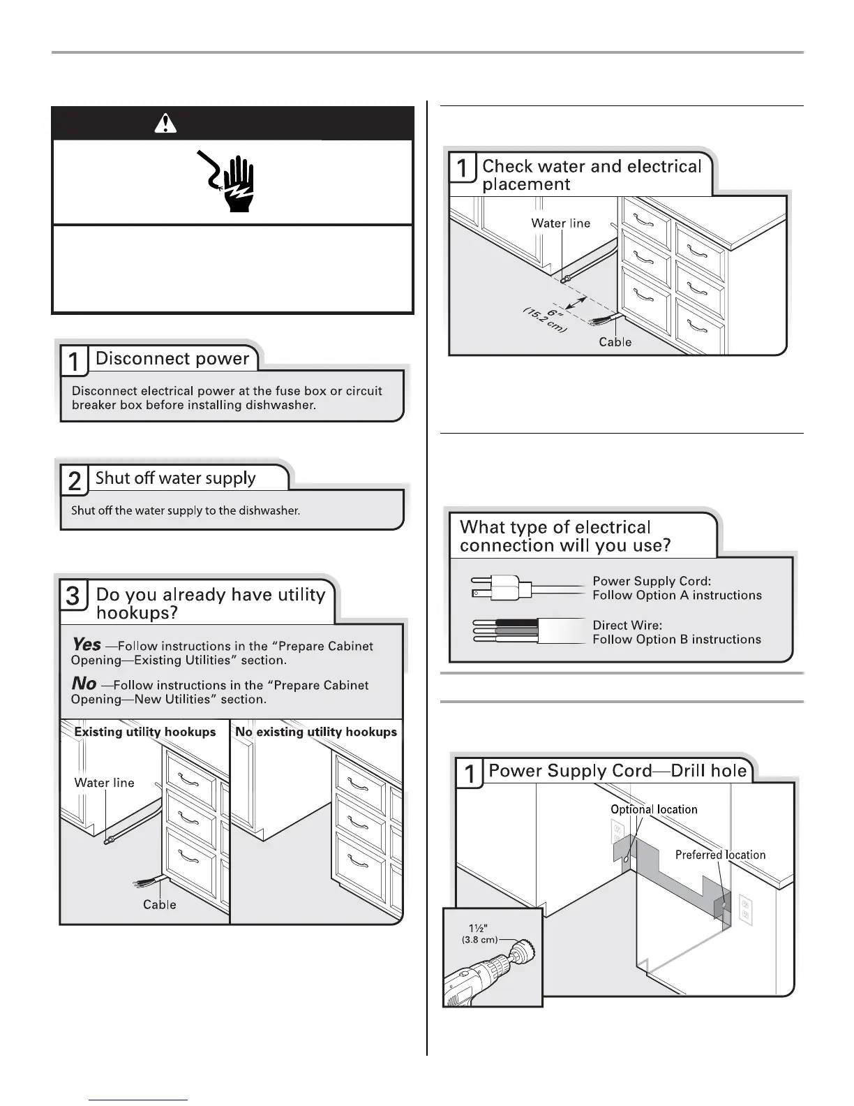 Drill a 1¹⁄₂" (3.8 cm) hole in cabinet side or rear.