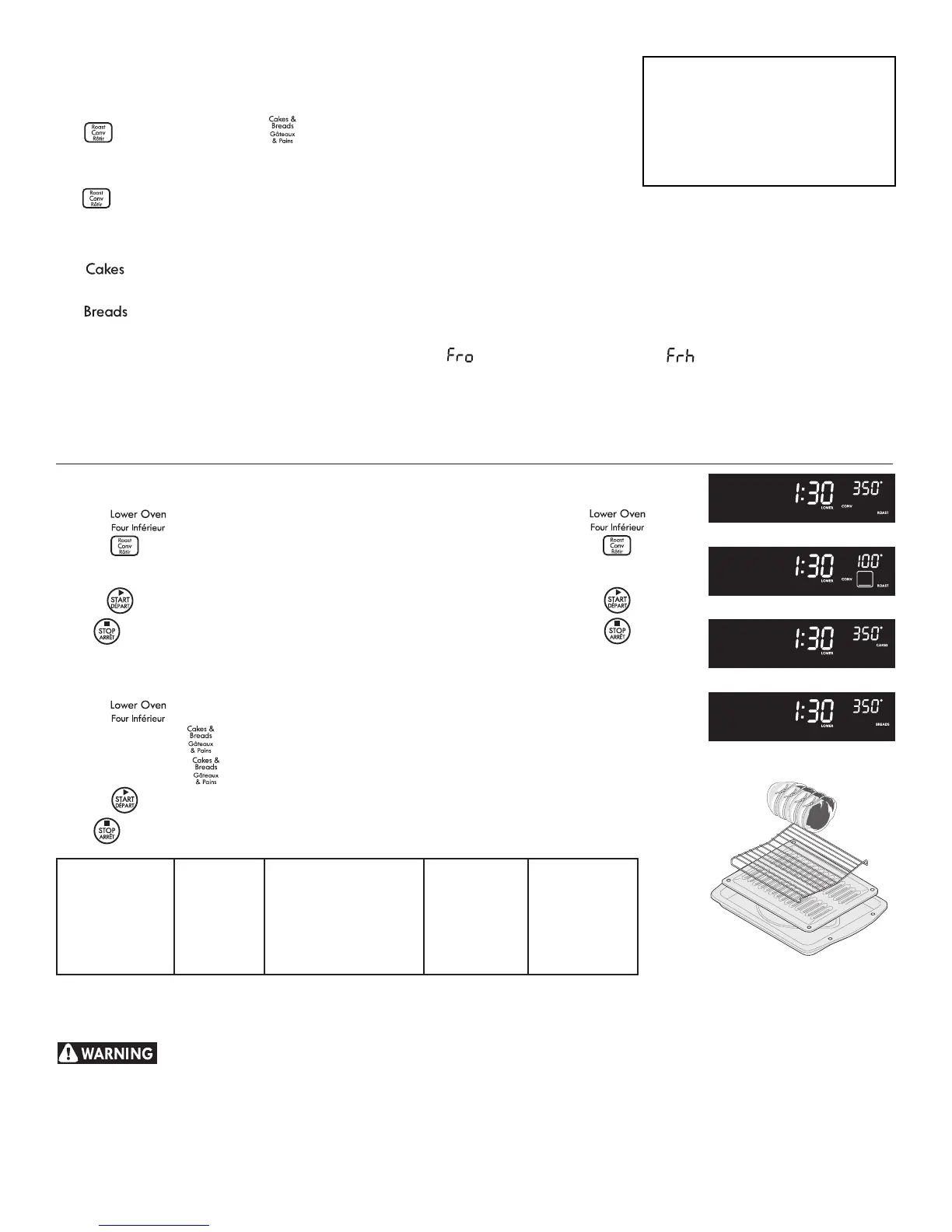 convection fan to help cooking on multiple racks at once. Note: The upper oven will preheat faster than the lower oven.