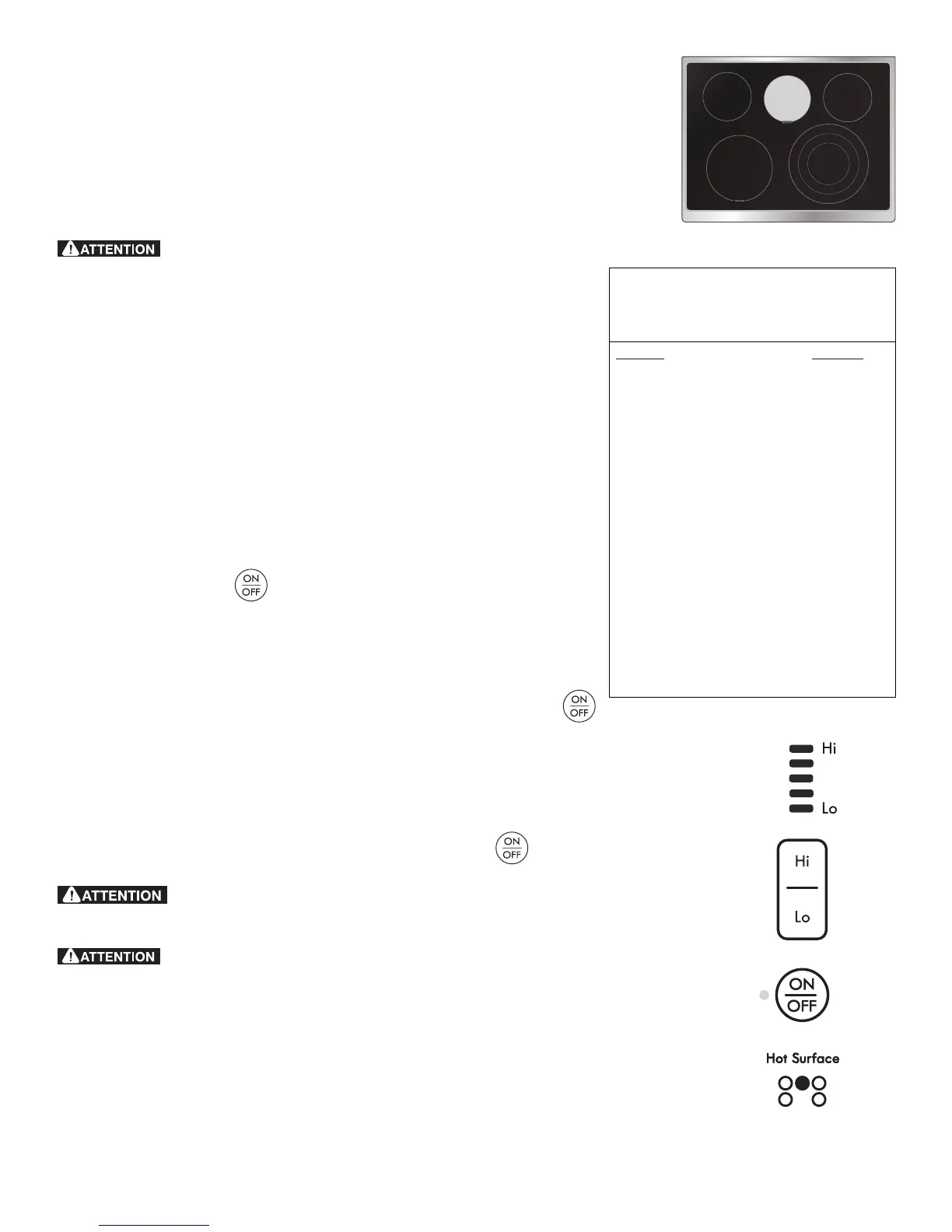 réchaud augmente ou diminue. La zone réchaud a 5 niveaux de puissance, partant de Hi