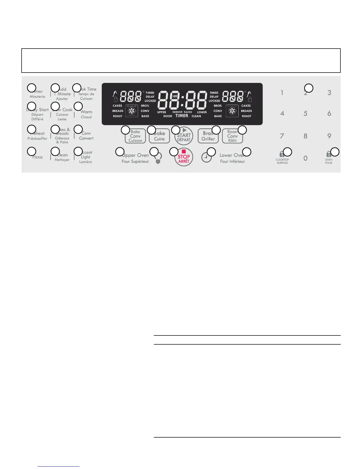 18. - Utilisée pour sélectionner le four supérieur.