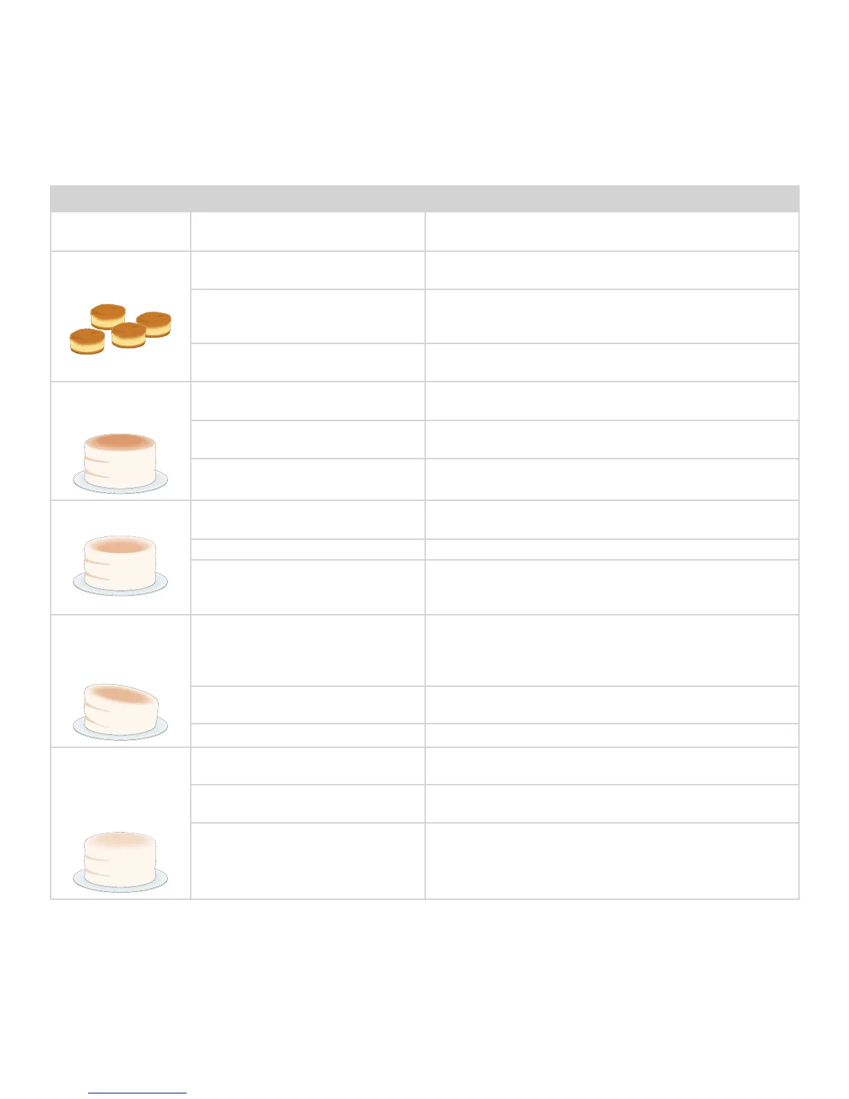 Tableau des problèmes de cuisson et les solutions