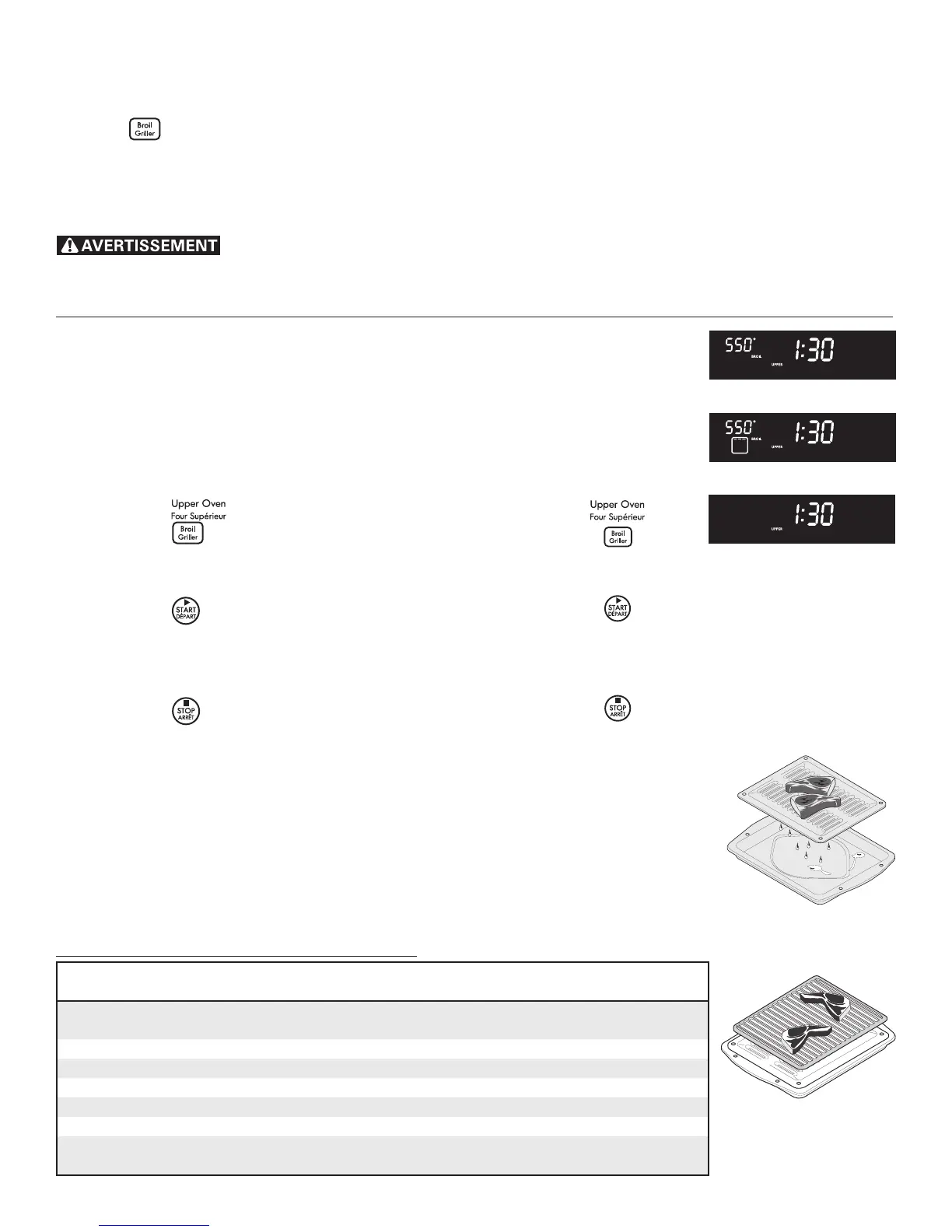 l’élément supérieur. La fonction cuisson au gril est préréglée à 550°F; toutefois, elle peut être ajustée à des températures allant