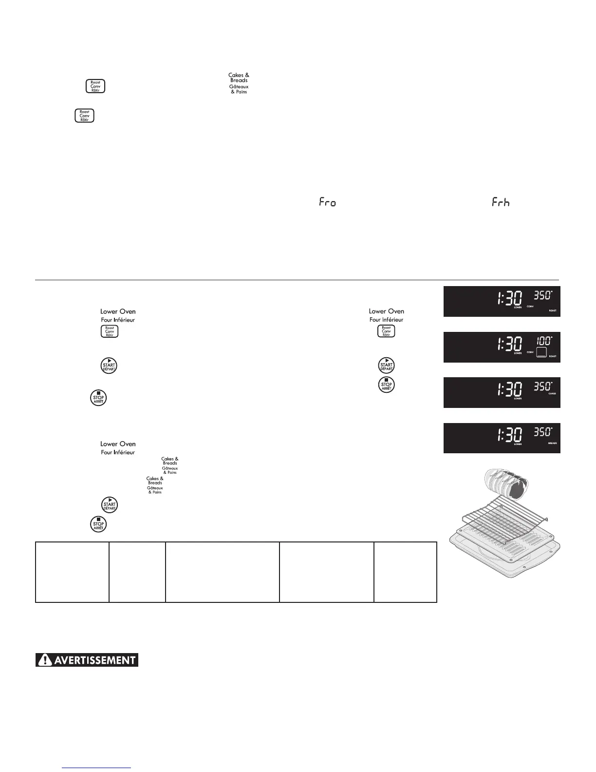 1. Placez la grille du four à la première ou deuxième position (à partir du bas). L’air chaud circule sous la nourriture