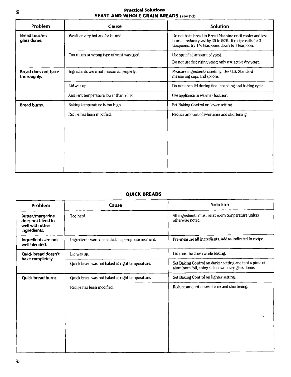 Bread does not bake Ingredients were not measured properly. Measure ingredients carefully. Use U.S. Standard