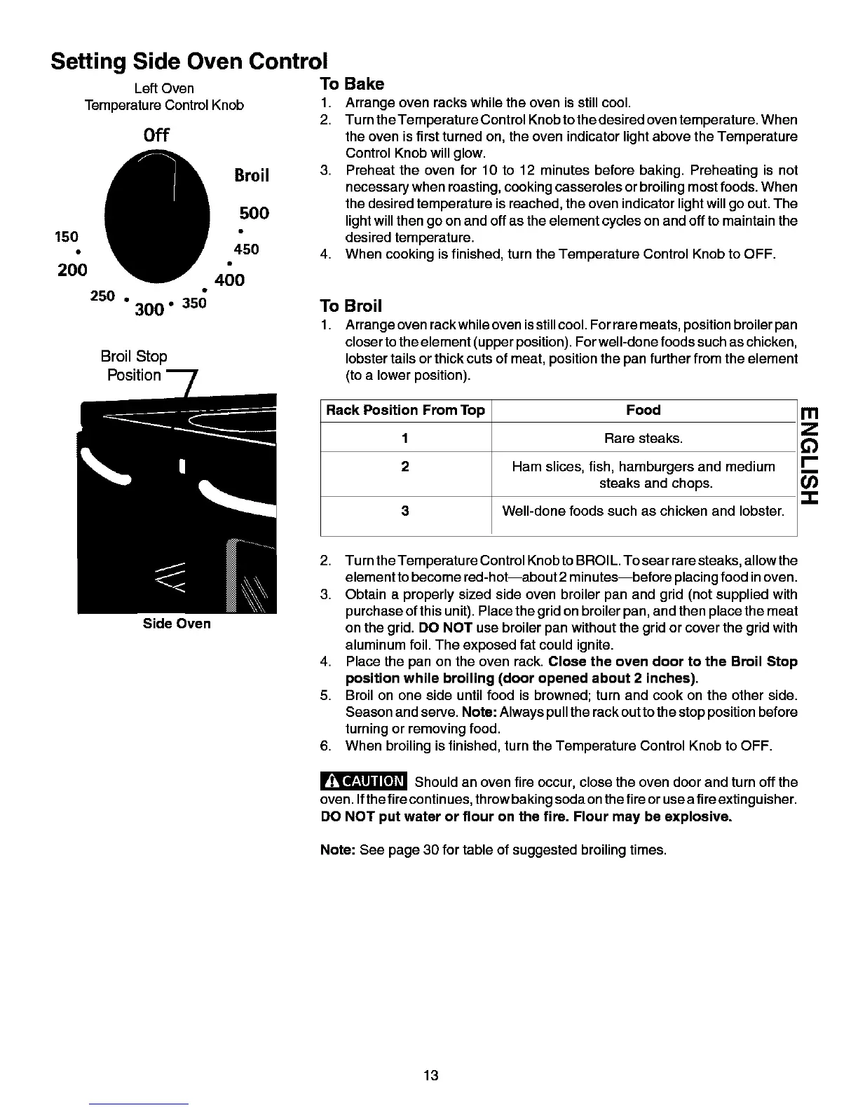 3. Obtain a properly sized side oven broiler pan and grid (not supplied with