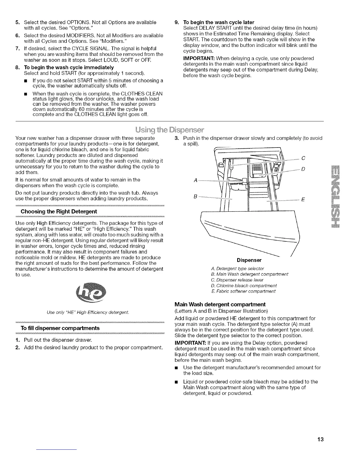 Kenmore Elite HE3 110.4789 Series - Using the Dispenser; Choosing the Right Detergent