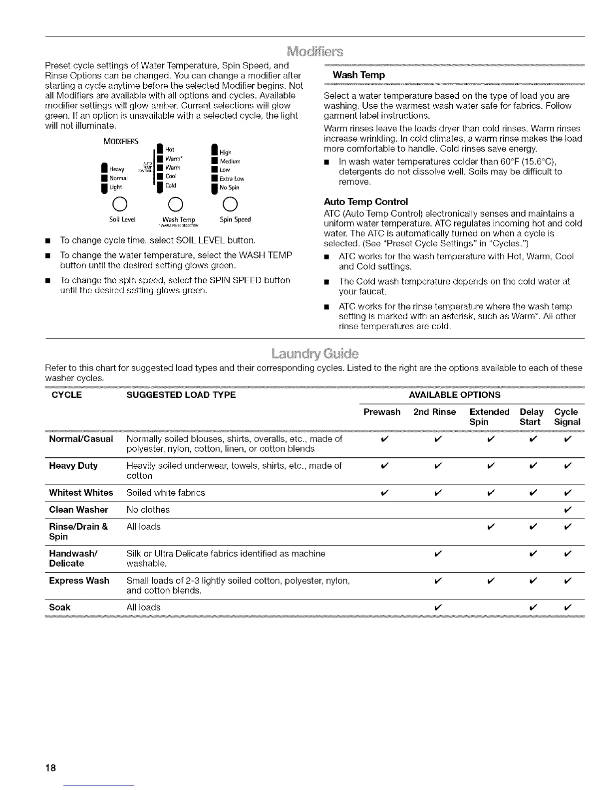 Kenmore Elite HE3 110.4789 Series - Modifiers; Wash Temp; Laundry Guide