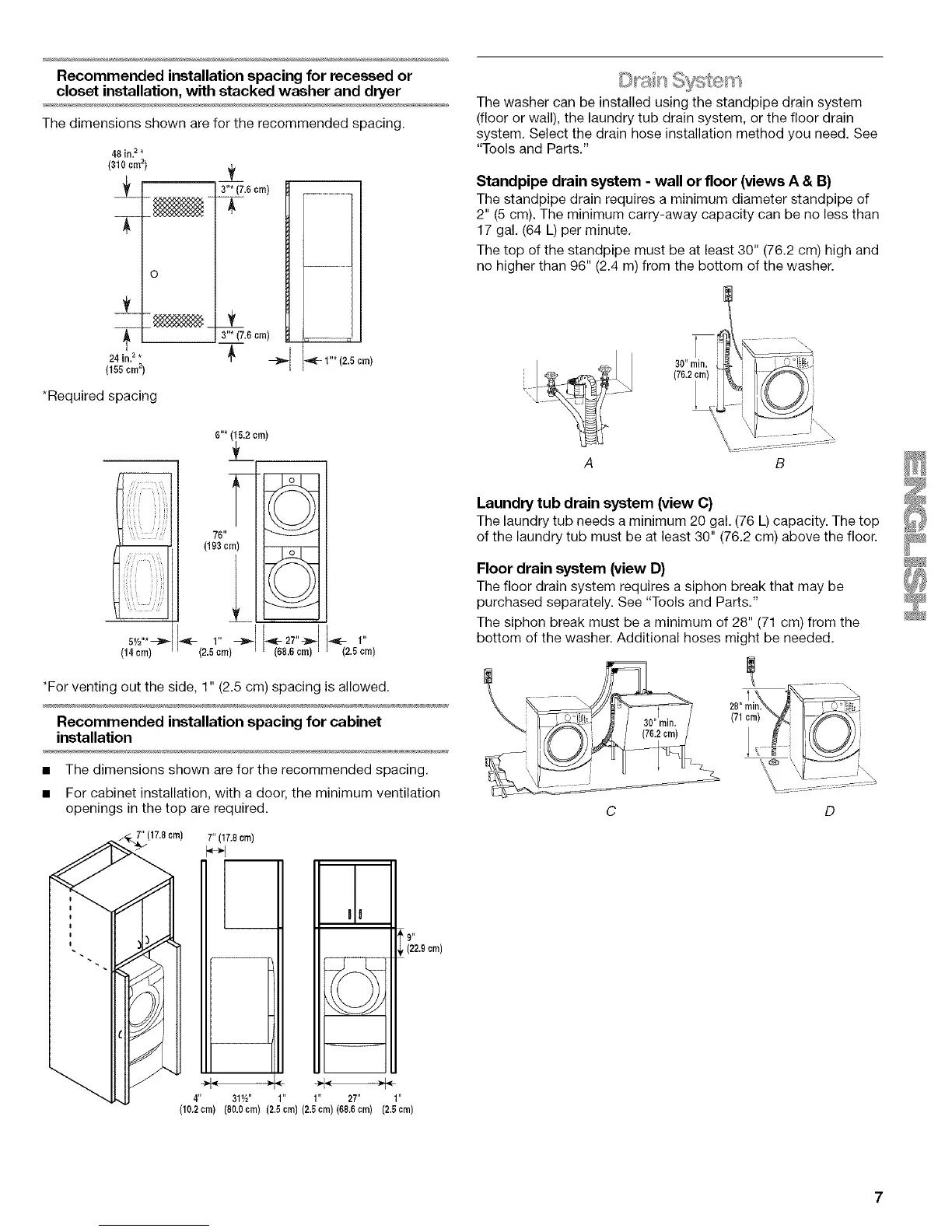 Kenmore Elite HE3 110.4789 Series - Drain System; Standpipe Drain System - Wall or Floor; Laundry Tub Drain System; Floor Drain System