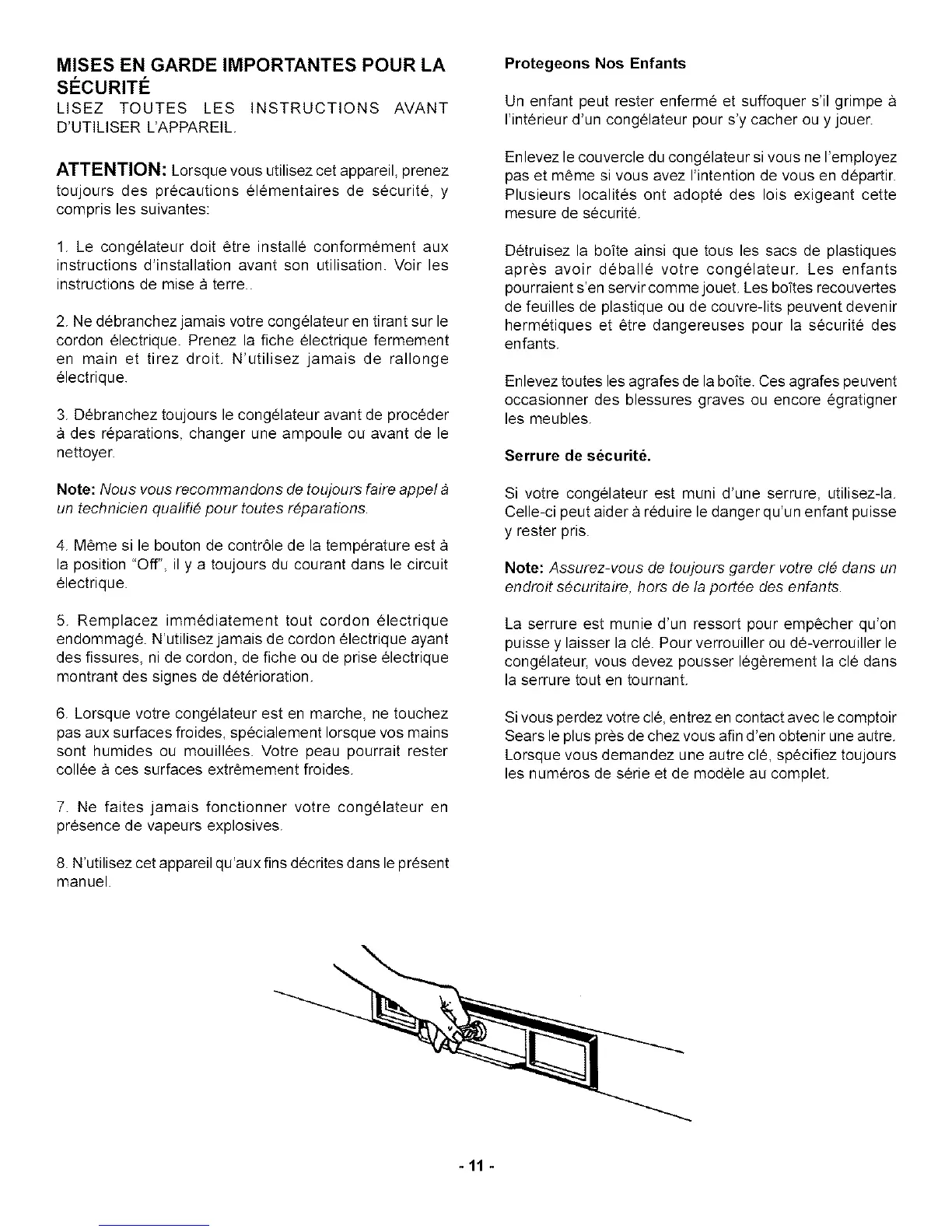 Si votre congelateur est muni d'une serrure, utilisez-la