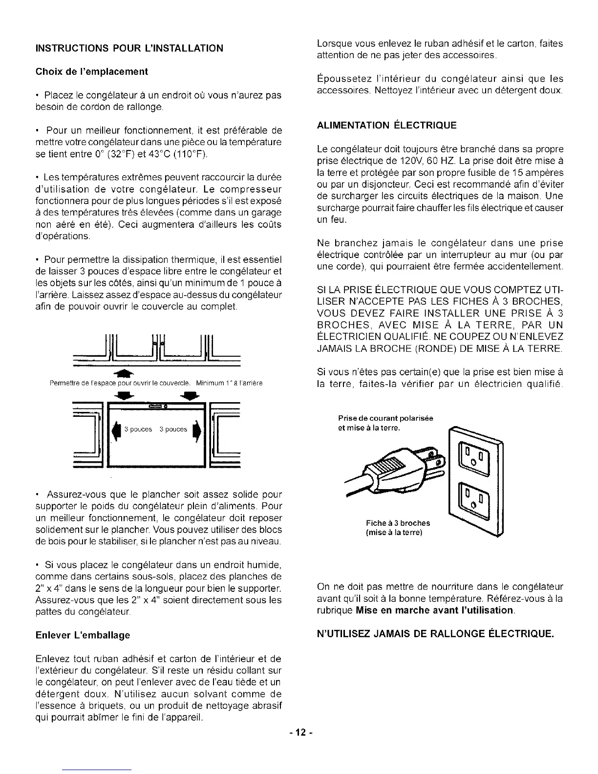 de laisser 3 pouces d'espace libre entre le congelateur et