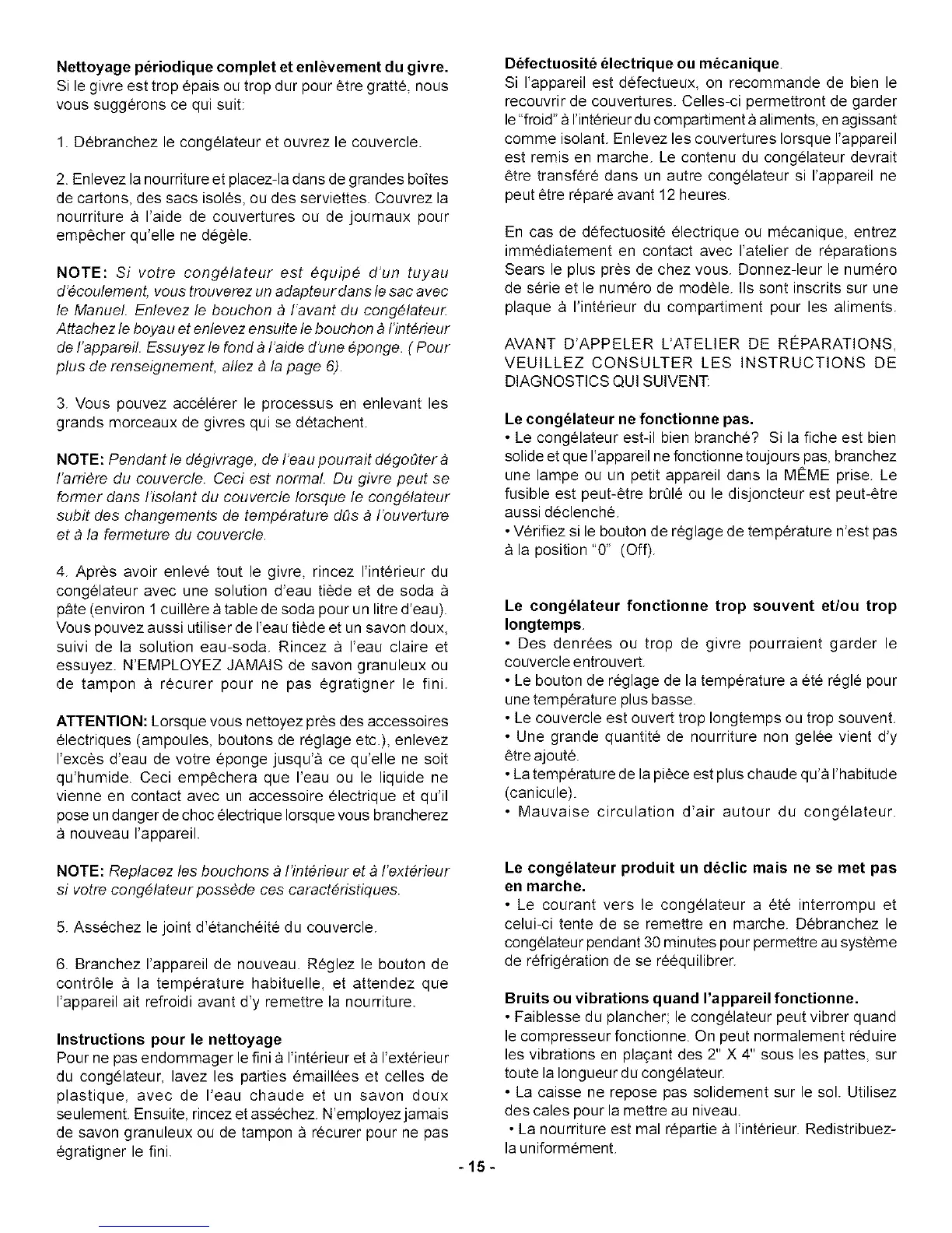 NOTE: Pendant le degivrage, de I'ea u pourrait degoOter