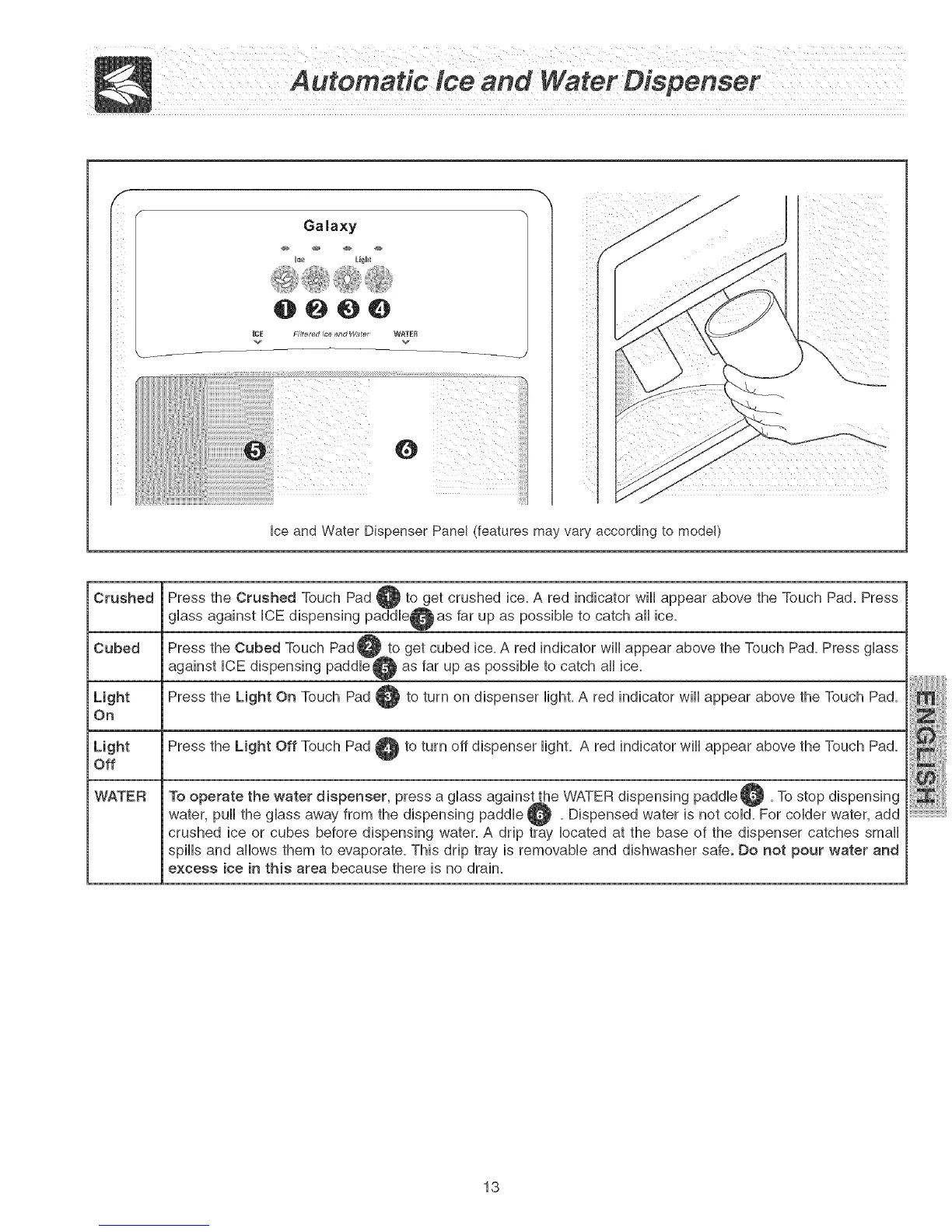 Press the Crushed Touch Pad @ to get crushed ice. A red indicator wHHappear above the Touch Pad. Press