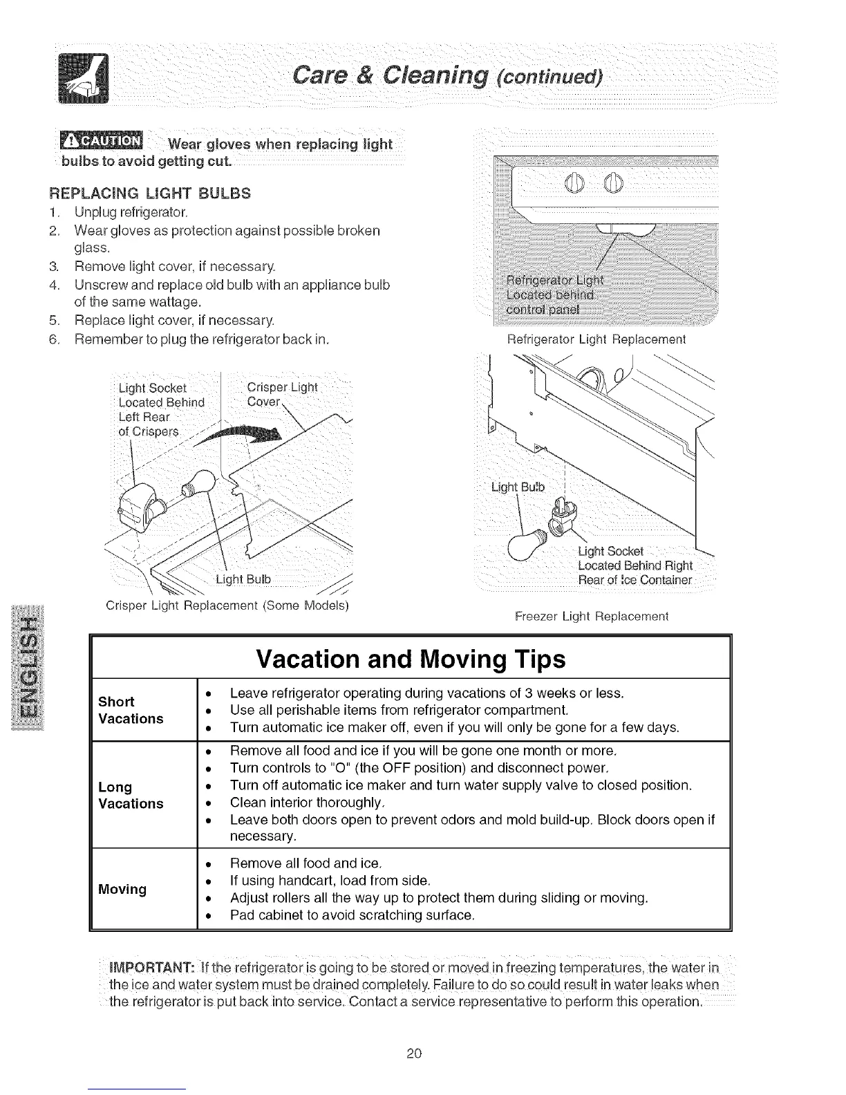• Leave refrigerator operating during vacations of 3 weeks or less.