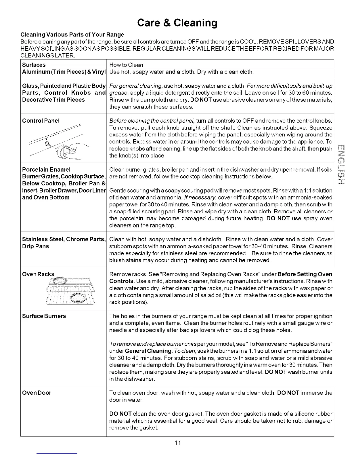 Before cleaning any part ofthe range, be sure all controls are turned OFF and the range is COOL. REMOVE SPtLLOVERS AND