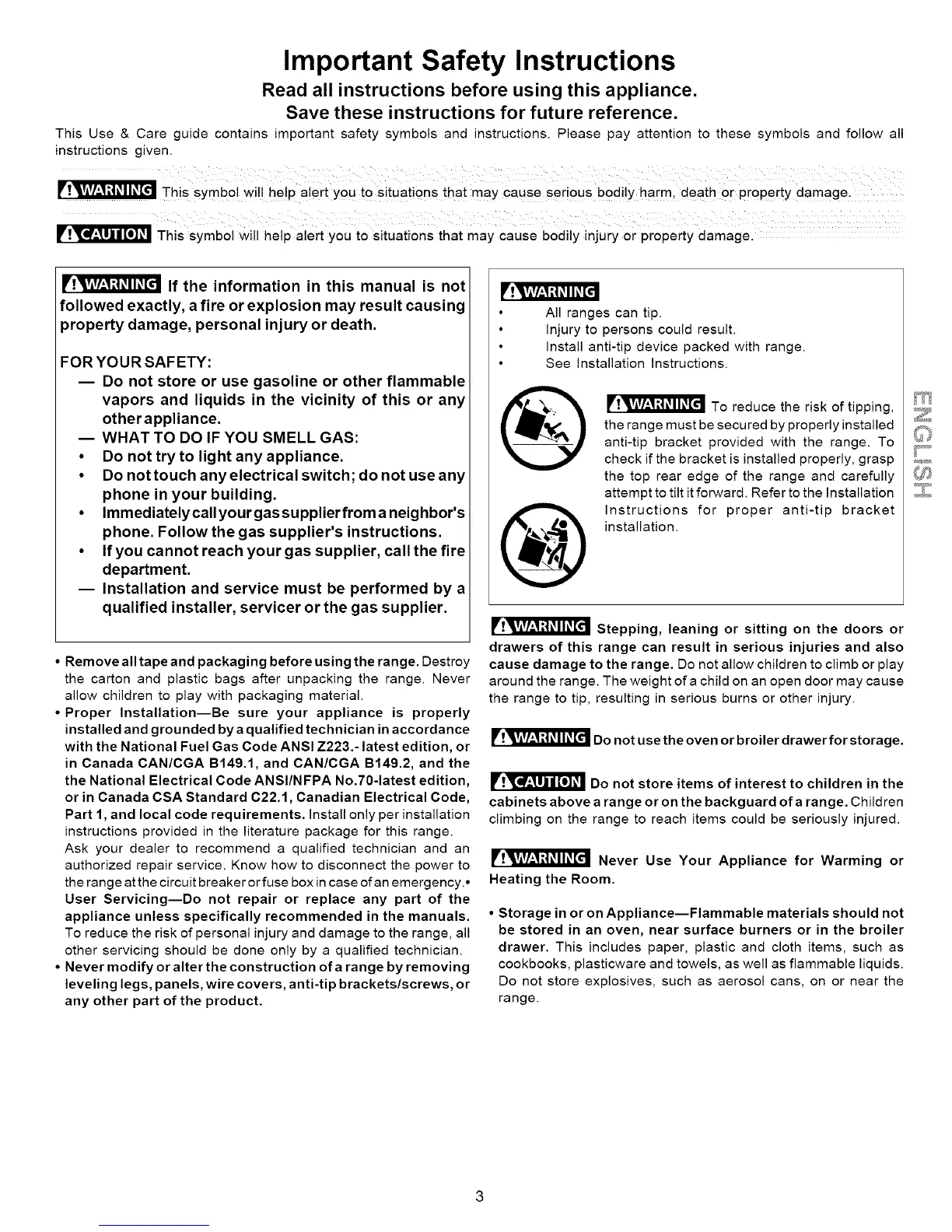 This Use & Care guide contains important safety symbols and instructions. Please pay attention to these symbols and follow all