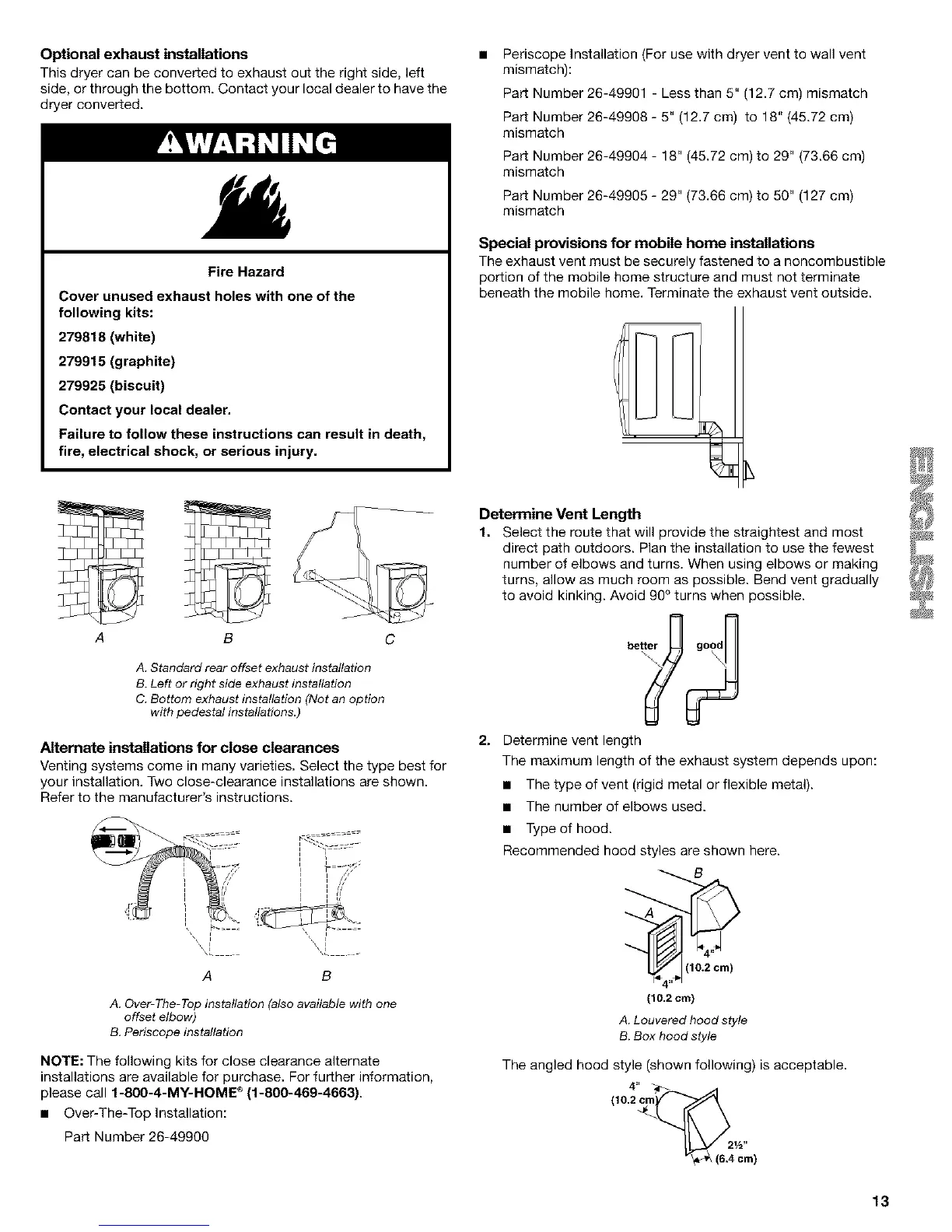 • Periscope Installation (For use with dryer vent to wall vent
