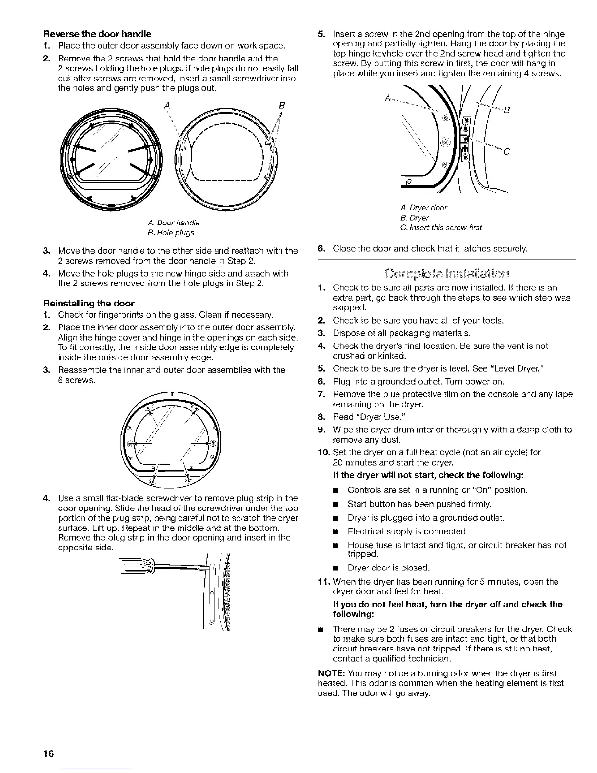 5. Check to be sure the dryer is level. See "Level Dryer."