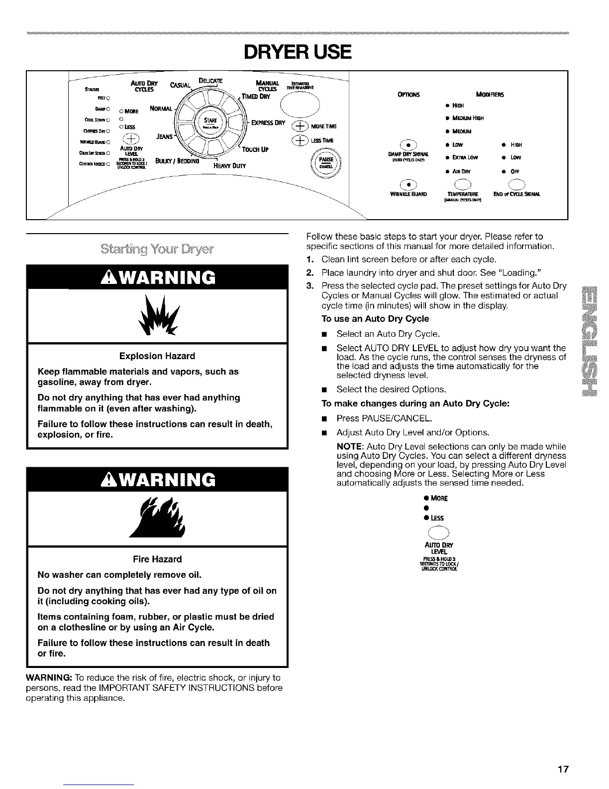 Select AUTO DRY LEVEL to adjust how dry you want the