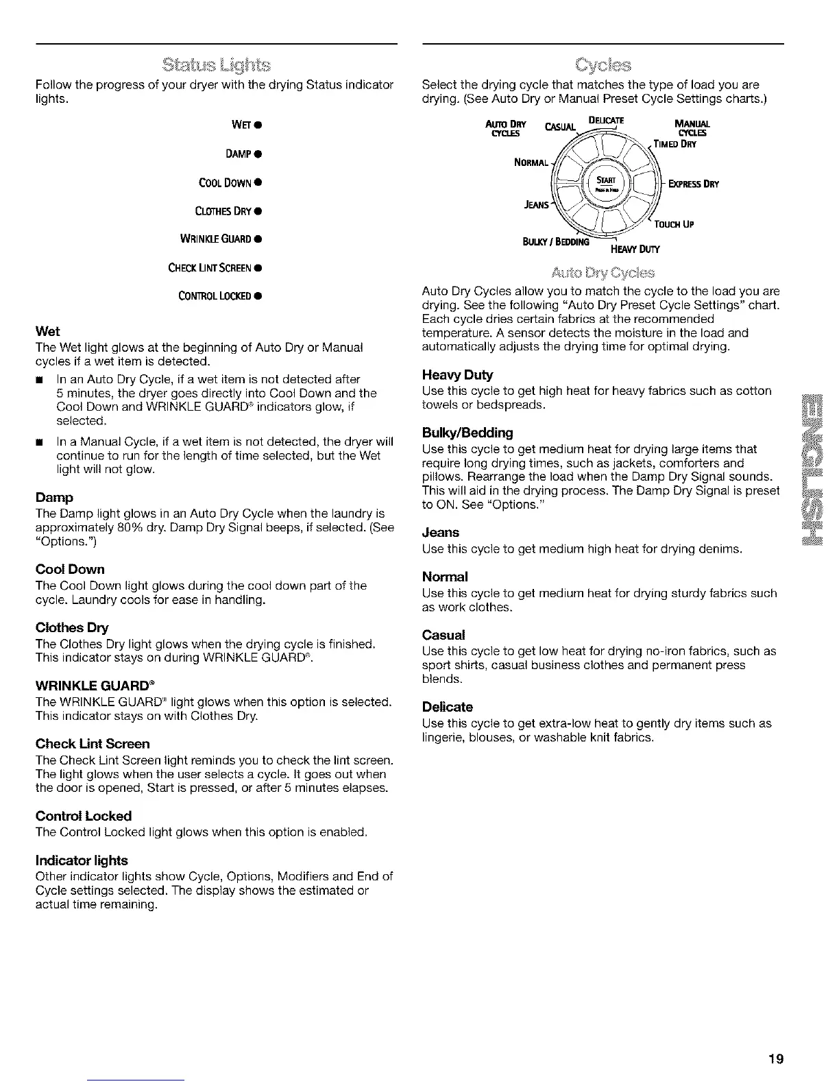 The Damp light glows in an Auto Dry Cycle when the laundry is