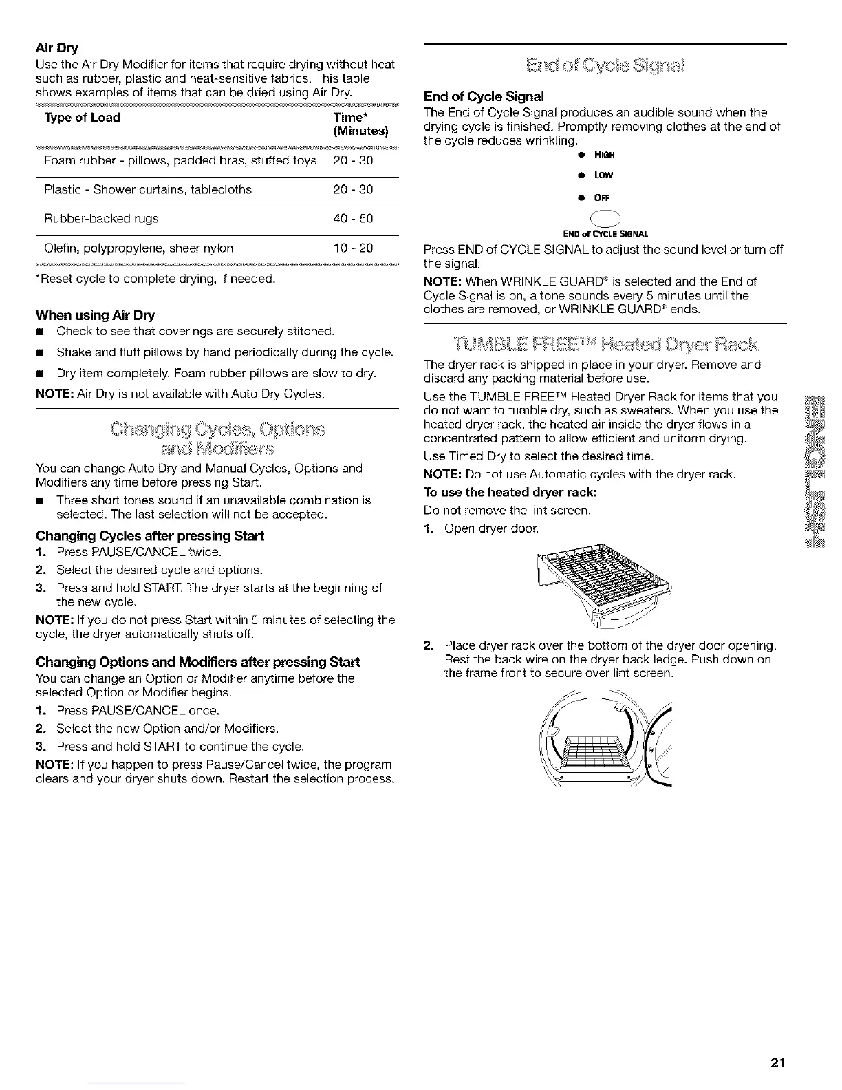 NOTE: Air Dry is not available with Auto Dry Cycles.