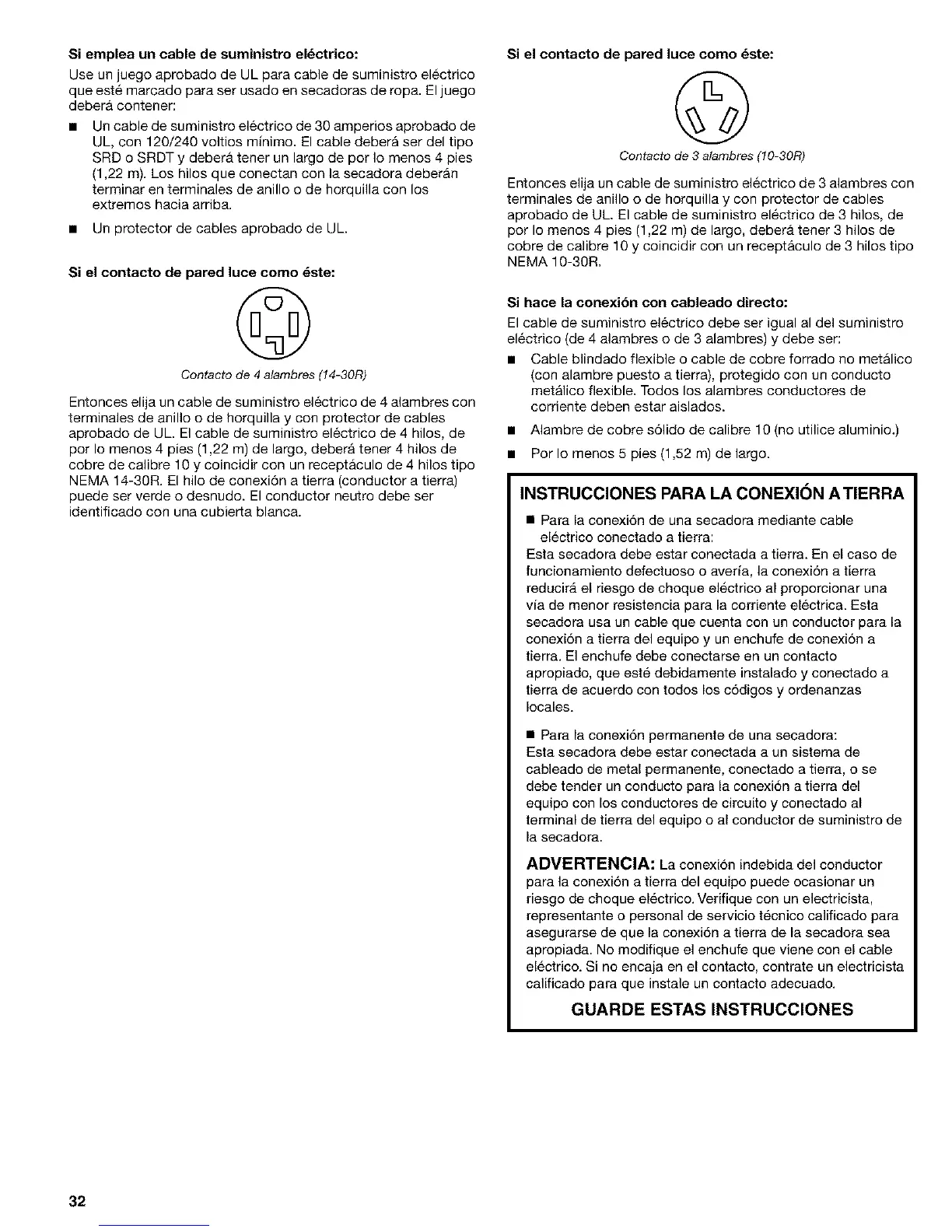 NEMA 14-30R. El hilo de conexi6n a tierra (conductor a tierra)