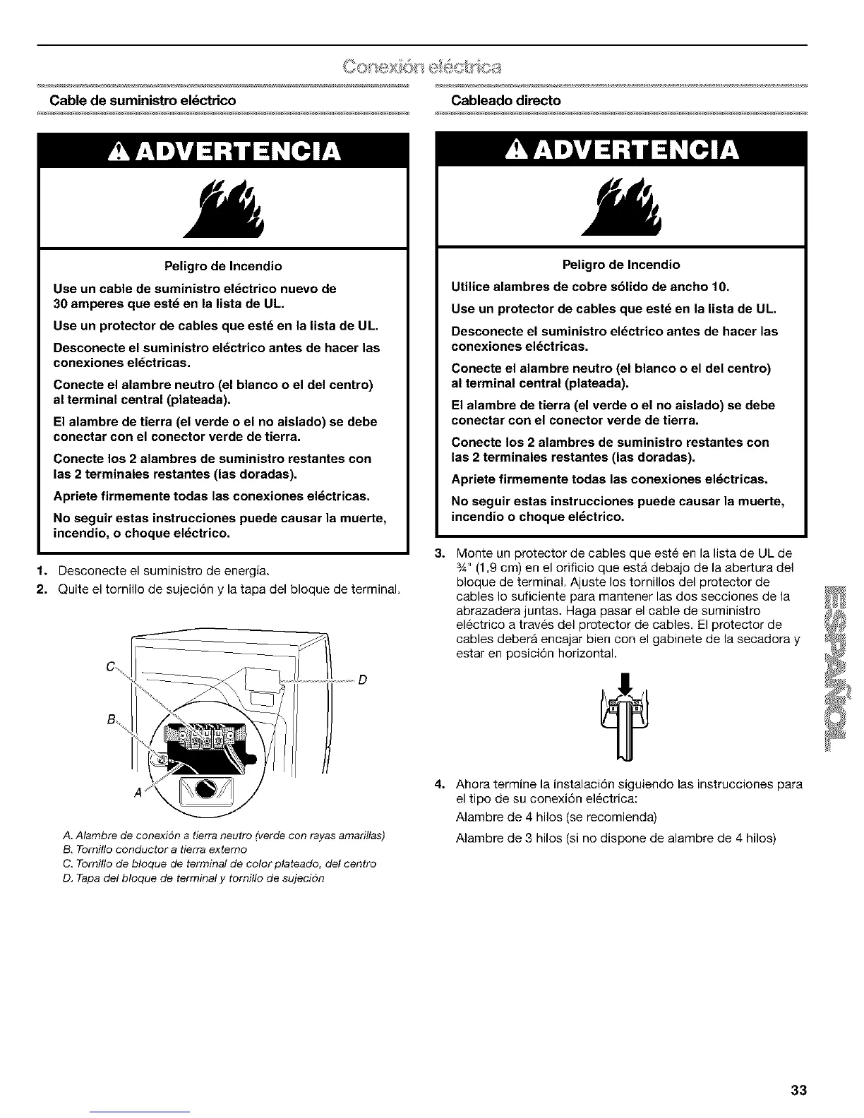 D. Tapa de/bloque de terminal y tornillo de sujeci4n