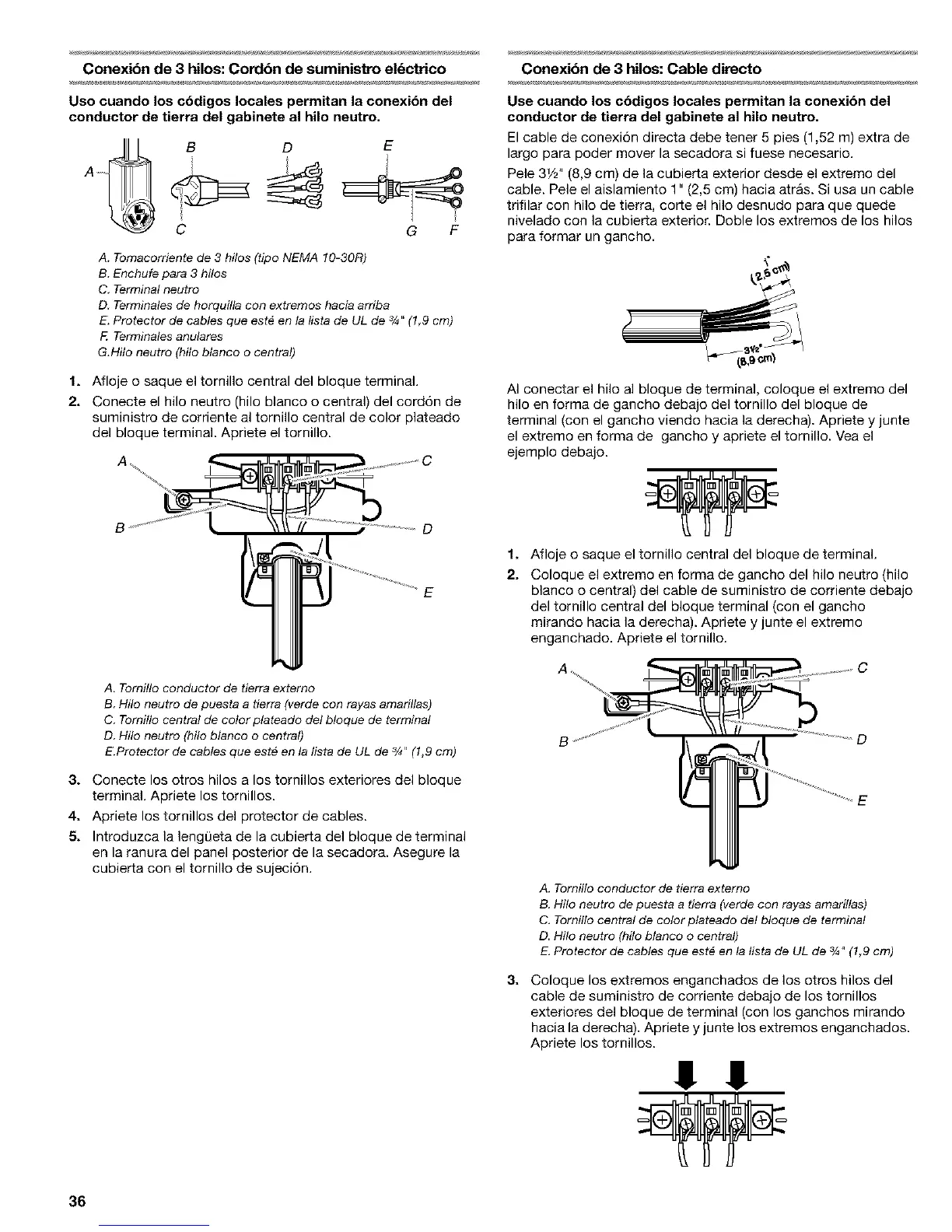 trifilar con hi]o de tierra, cor[e el hilo desnudo para que quede