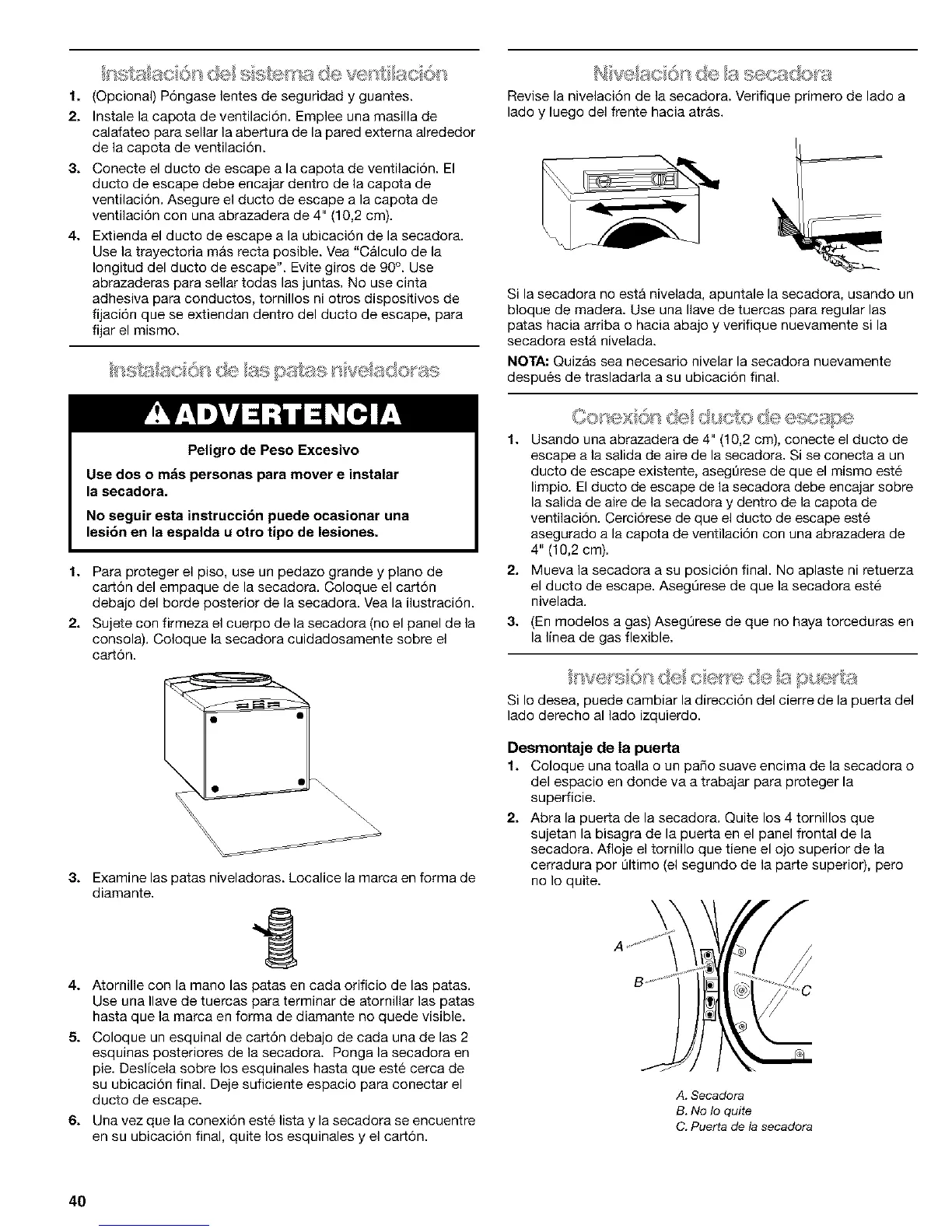 NOTA: Quizas sea necesario nivelar la secadora nuevamente