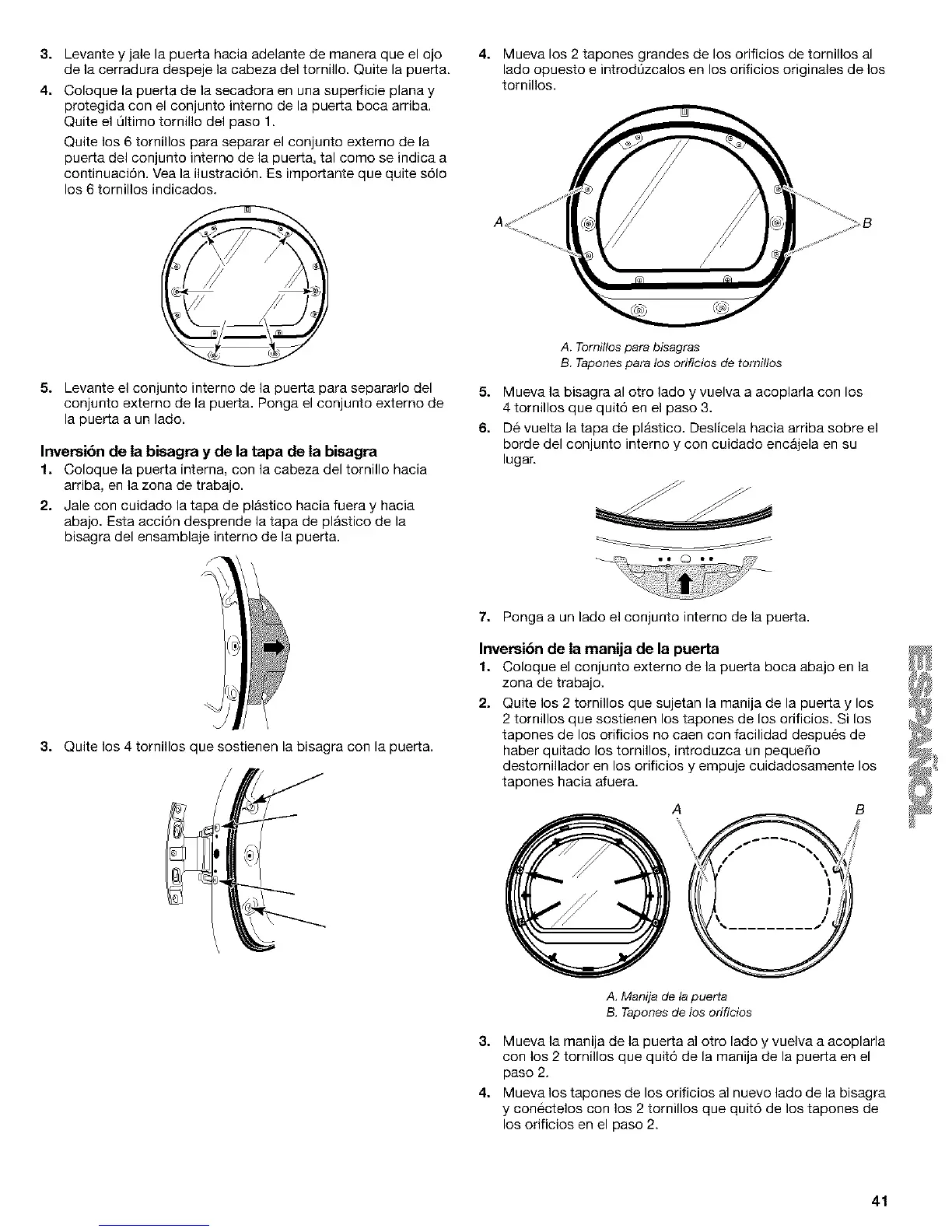 4. Mueva los tapones de los orificios al nuevo lado de la bisagra