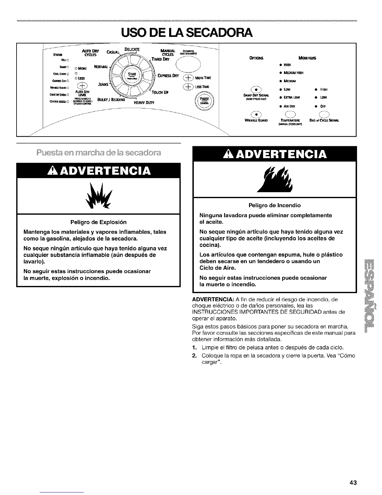 2. Coloque la ropa en la secadora y cierre la puerta. Vea "C6mo