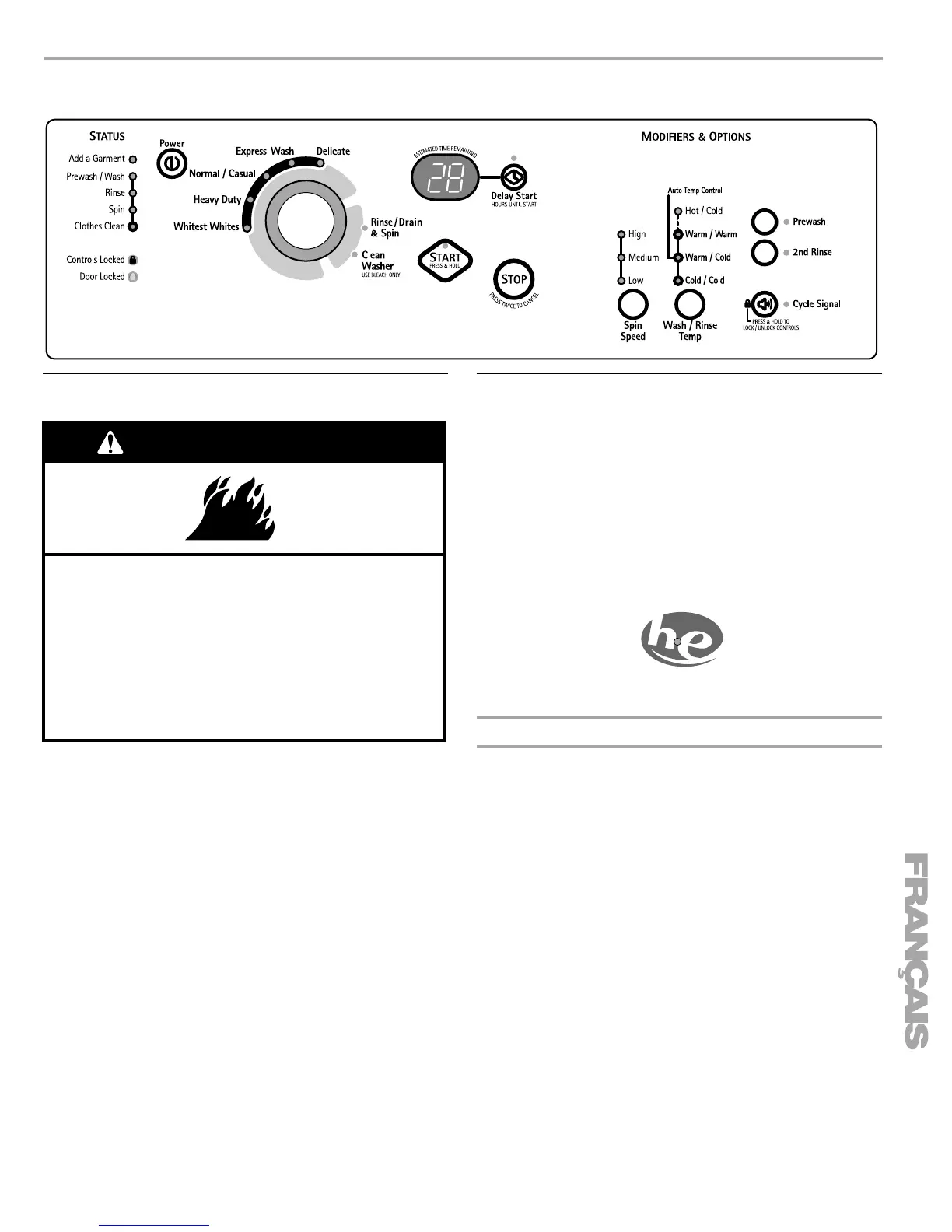 linge. Utiliser uniquement un détergent HE Haute efficacité.