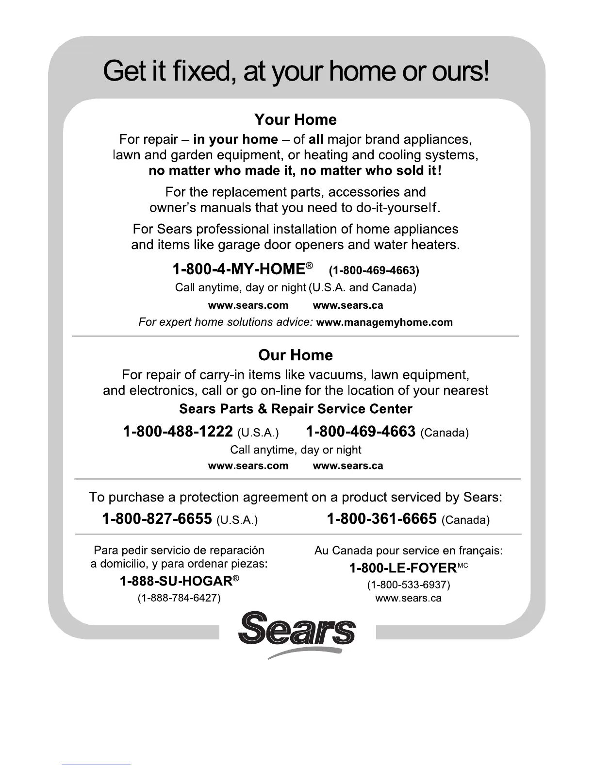 Service Mark of Sears Brands LLC, under licensee by Sears Canada.