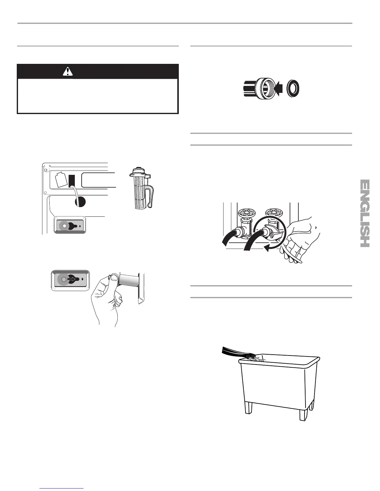 ■ Run water through both faucets and inlet hoses, into a