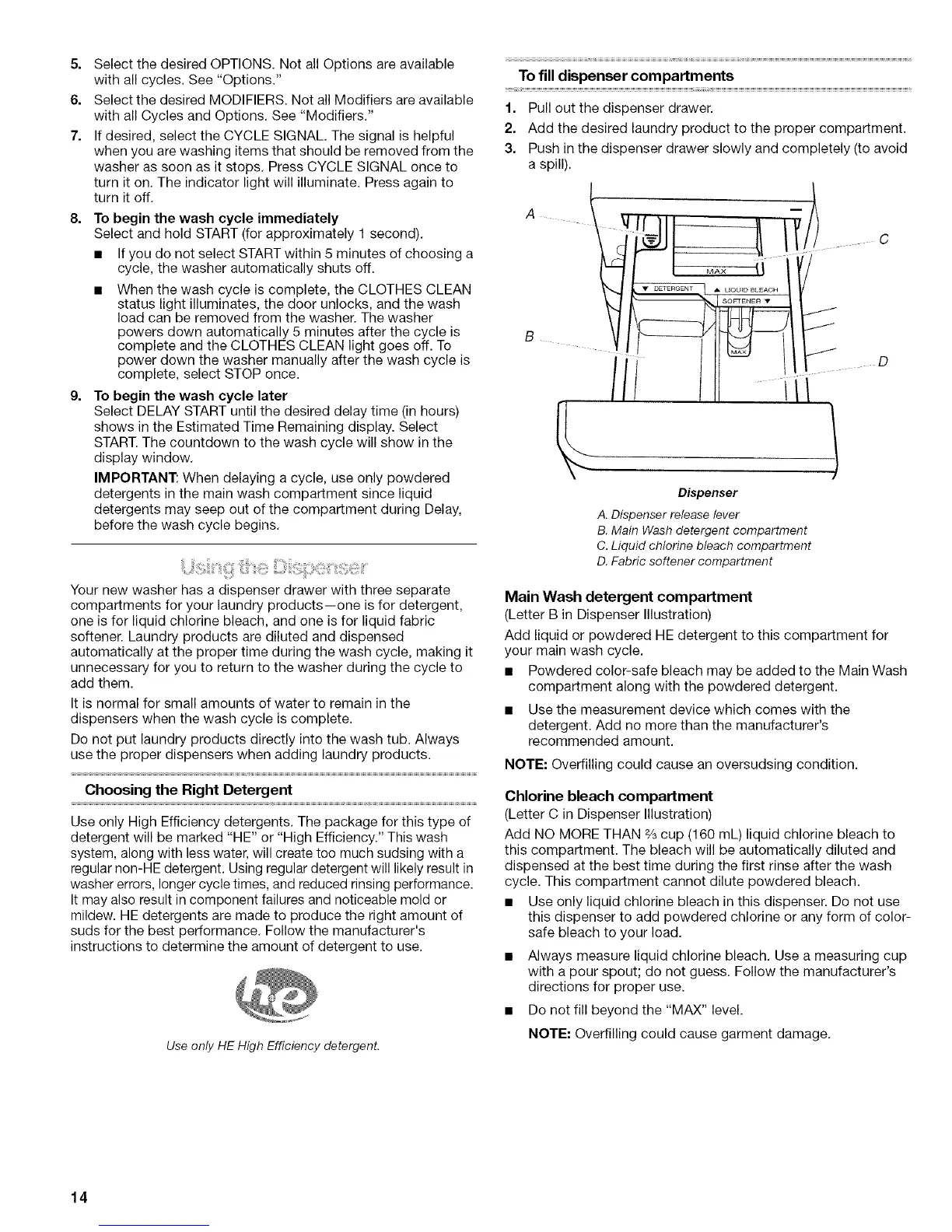 detergent will be marked "HE" or "High Efficiency." This wash