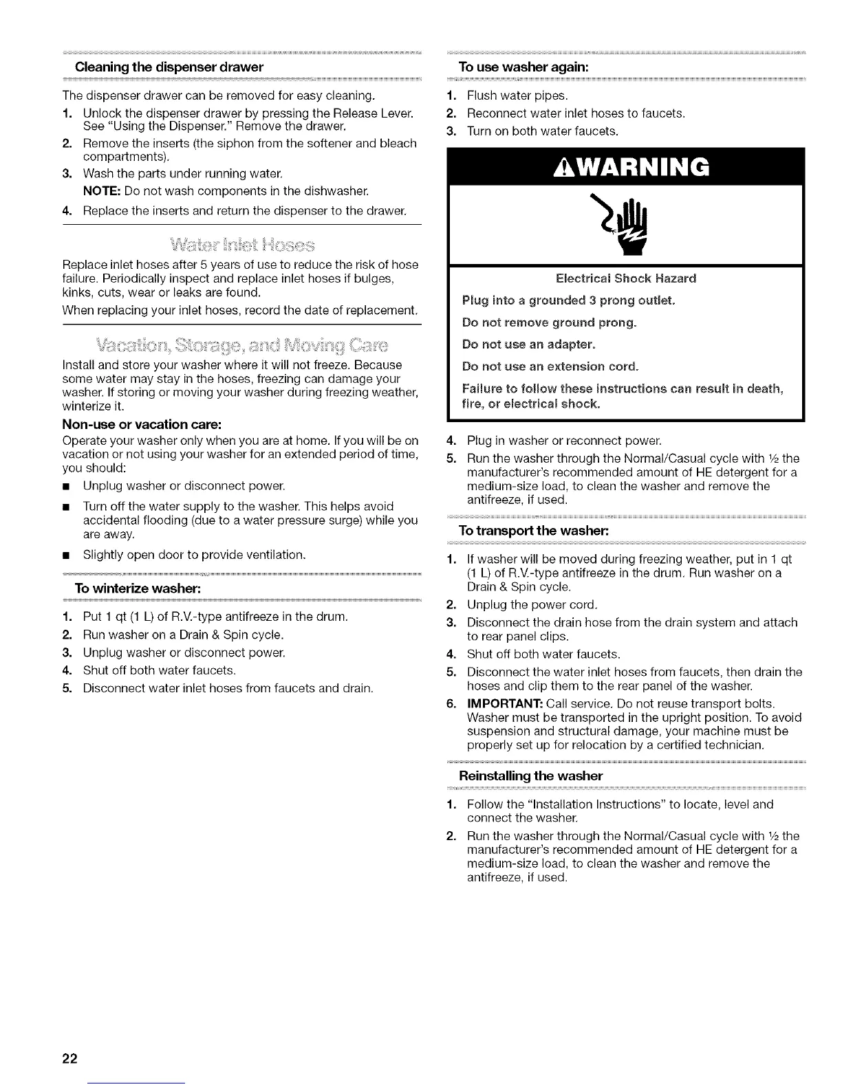failure. Periodically inspect and replace inlet hoses if bulges,