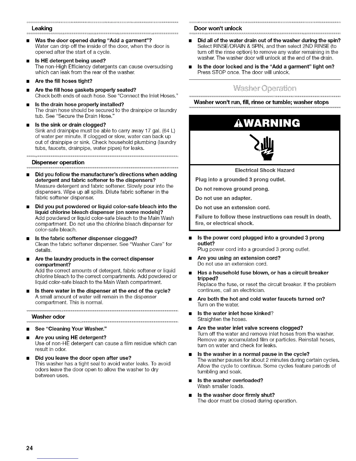 Check both ends of each hose. See "Connect the Inlet Hoses."