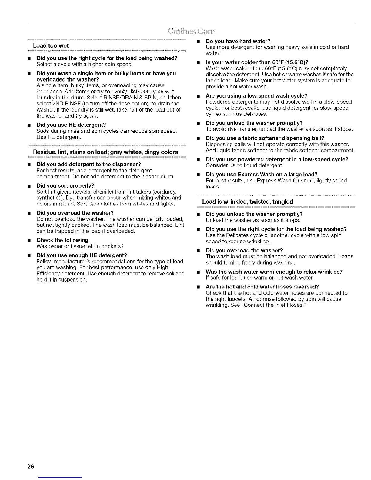 • Did you use the right cycle for the load being washed?