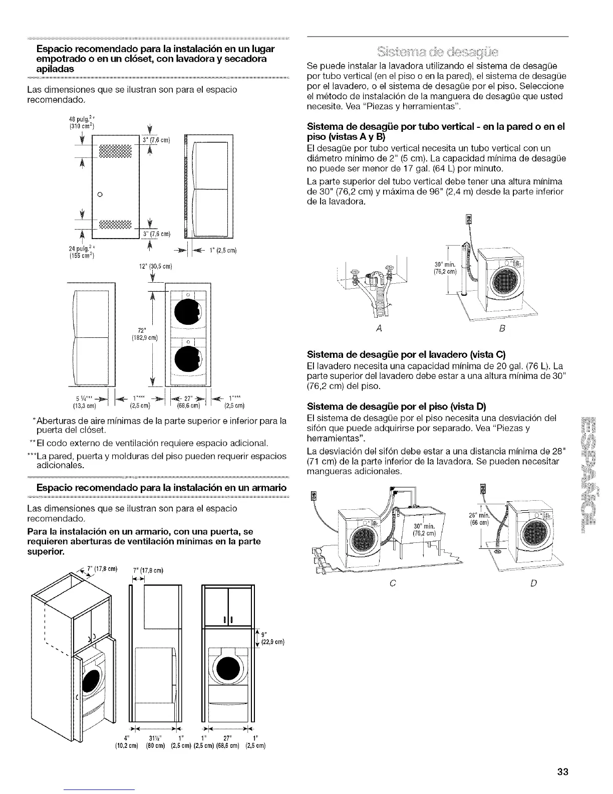 (71 cm) de la parte inferior de la lavadora. Se pueden necesitar