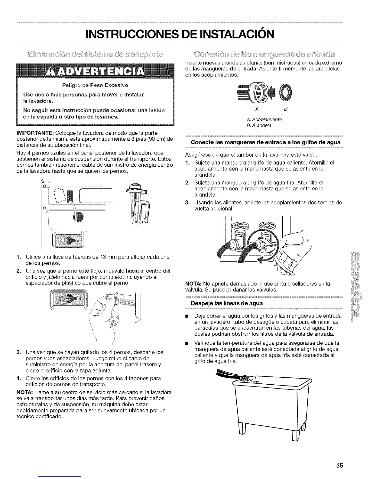 NOTA: Llame a su centre de servicio mas cercano si la lavadora