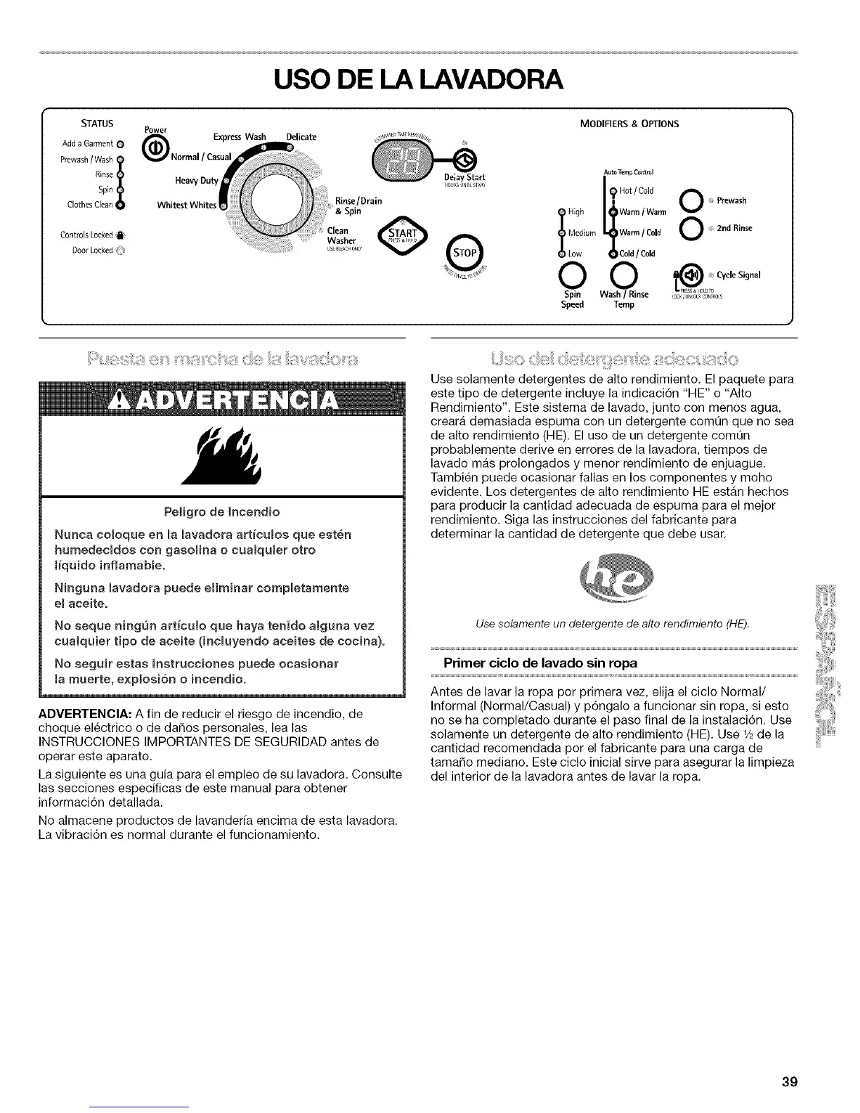 este tipo de detergente incluye la indicaci6n "HE" o "Alto