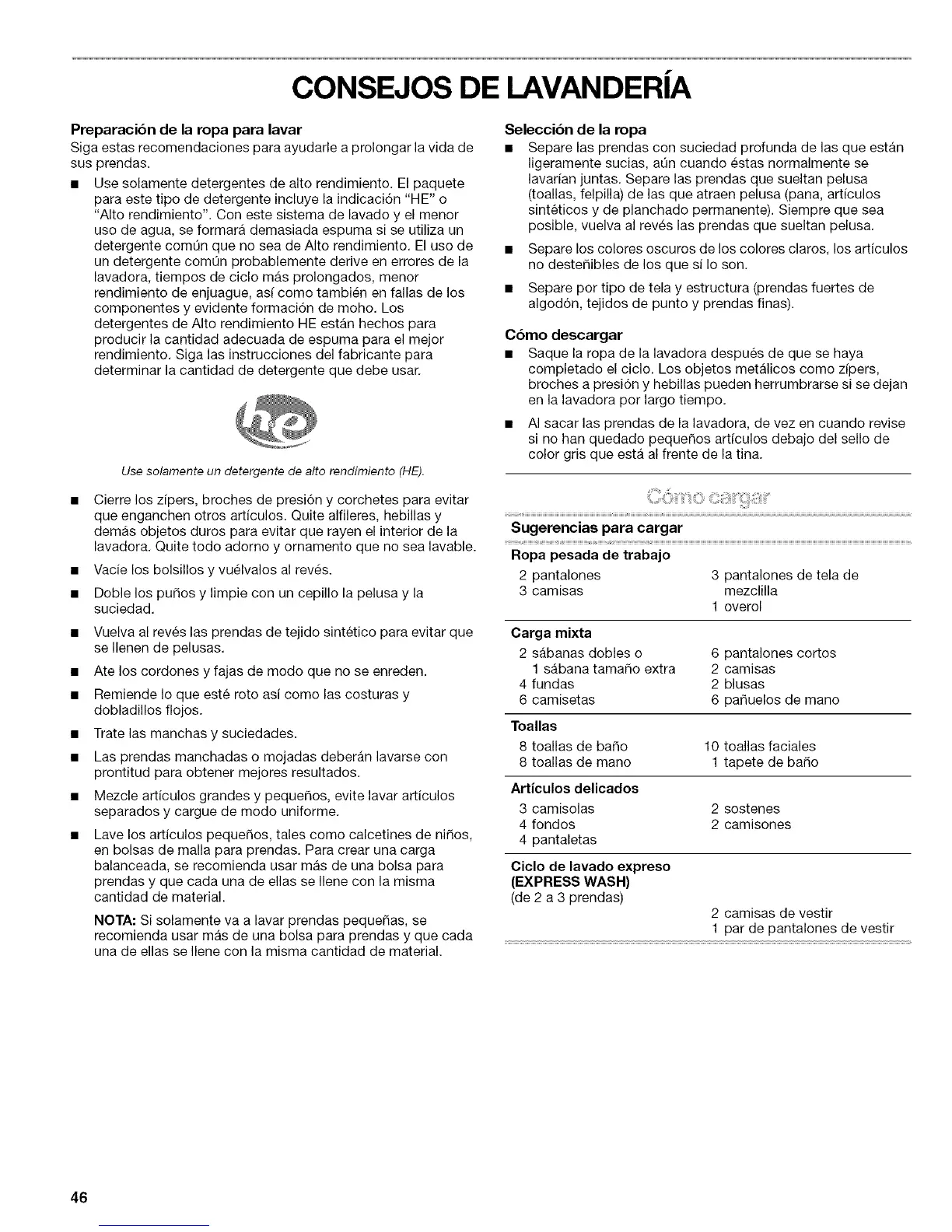 para este tipo de detergente incluye la indicaci6n "HE" o